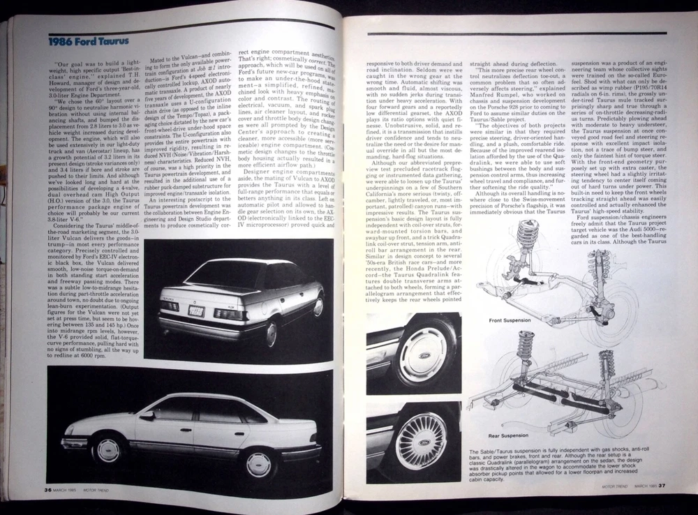 FORD TAURUS - MOTOR TREND MAGAZINE, MARCH 1985 VOL. 37, NO. 3