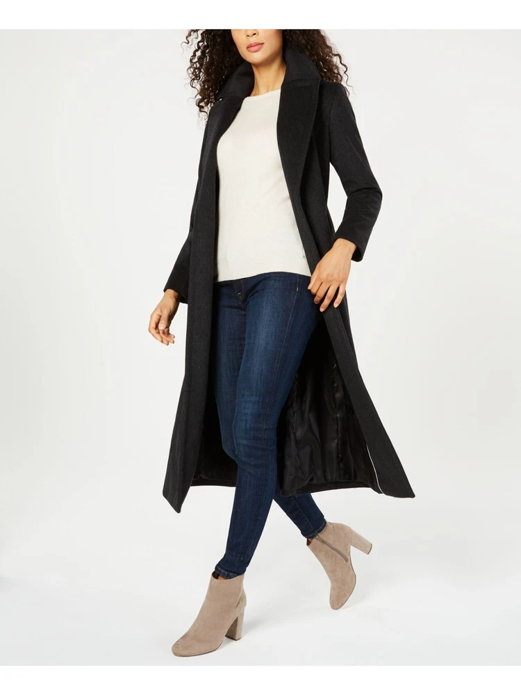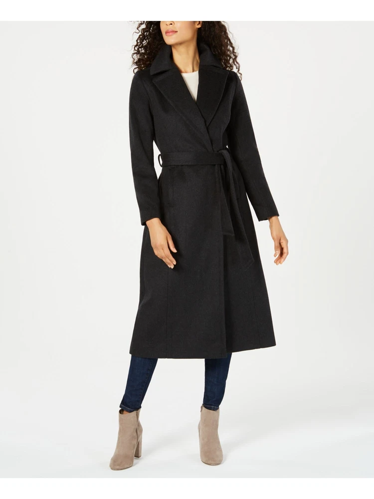 FORECASTER OF BOSTON Womens Black Pocketed Belted Walker Wrap Winter Coat 4