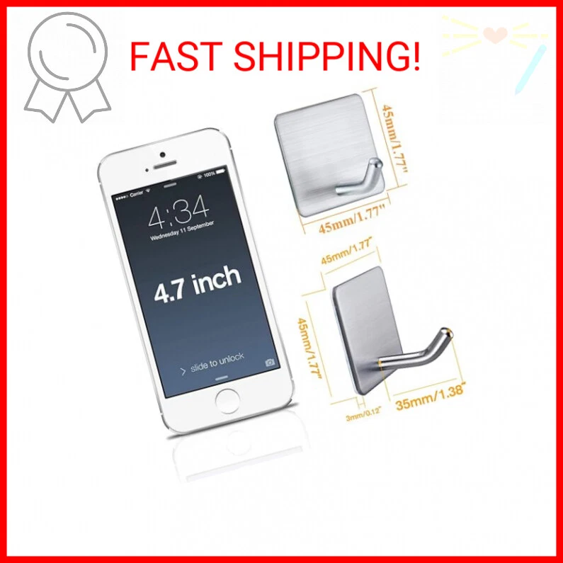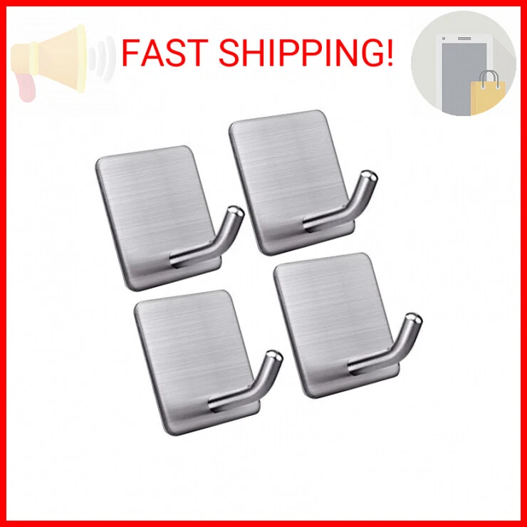 Welcome FOTYRIG Heavy Duty Adhesive Towel Hooks Stick on Towel Hanger Wall Holder Waterproof Stainless Steel Sticky Hooks for Hanging Bathroom Kitchen Home-4 Packs - 【STURDY AND POWERFUL】Strong self adhesive and upgraded 304 Brushed Stainless Steel adhesive hooks can provide extra strength and durability. Each hook can hold up to 15 lbs/6.8kg. - 【EASY TO INSTALL】No need to drill.just peel off the protective layer in the back and stick it on the desired position (must be smooth hard surface like ceramic tile, metal surface, glass, wood etc.) - 【STYLISH & MODERN】Extended long handle, ending with good bending, Stylish silver wall hooks, beautiful and fashionable, compatible with any other modern designed home decor. - 【WIDELY APPLICATION】Best towel hooks for pajamas, jackets, coat, bathrobes, bath towels, towels, hats, scarves, keys, purses, soup ladles, spatula, loofah - 【WATERPROOF & RUSTPROOF】Size: 1.77" x 1.77"x1.38". Rust and corrosion resistant adhesive shower hooks for your bedroom, bathroom, kitchen and office. The Fine Print Payments We accept the following payment methods: eBay Managed Payments Please pay as soon as possible after winning an auction, this will allow for quicker shipping times! Returns We accept returns. You can return unopened items in the original packaging within 30 days of your purchase with receipt or proof of purchase. If 14 days or more have passed since your purchase, we cannot offer you a refund or an exchange. Upon receipt of the returned item, we will fully examine it and notify you via email, within a reasonable period of time, whether you are entitled to a return. If you are entitled to a return, we will refund your purchase price and a credit will automatically be applied to your original method of payment. Only regular priced items may be refunded. Sale items are non-refundable. Shipping Shipment processing time All orders are processed within 2-3 business days. Orders are not shipped or delivered on weekends or holidays. If we are experiencing a high volume of orders, shipments may be delayed by a few days. Please allow additional days in transit for delivery. If there will be a significant delay in shipment of your order, we will contact you via email or telephone. Shipping rates & delivery estimates Shipping charges for your order will be calculated and displayed at checkout.