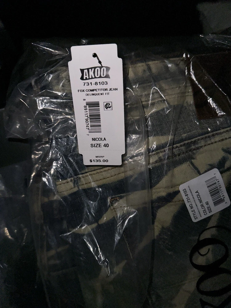 FOX COMPETITOR JEAN Akoo Nicola. Condition is New with tags. Shipped with UPS Ground.