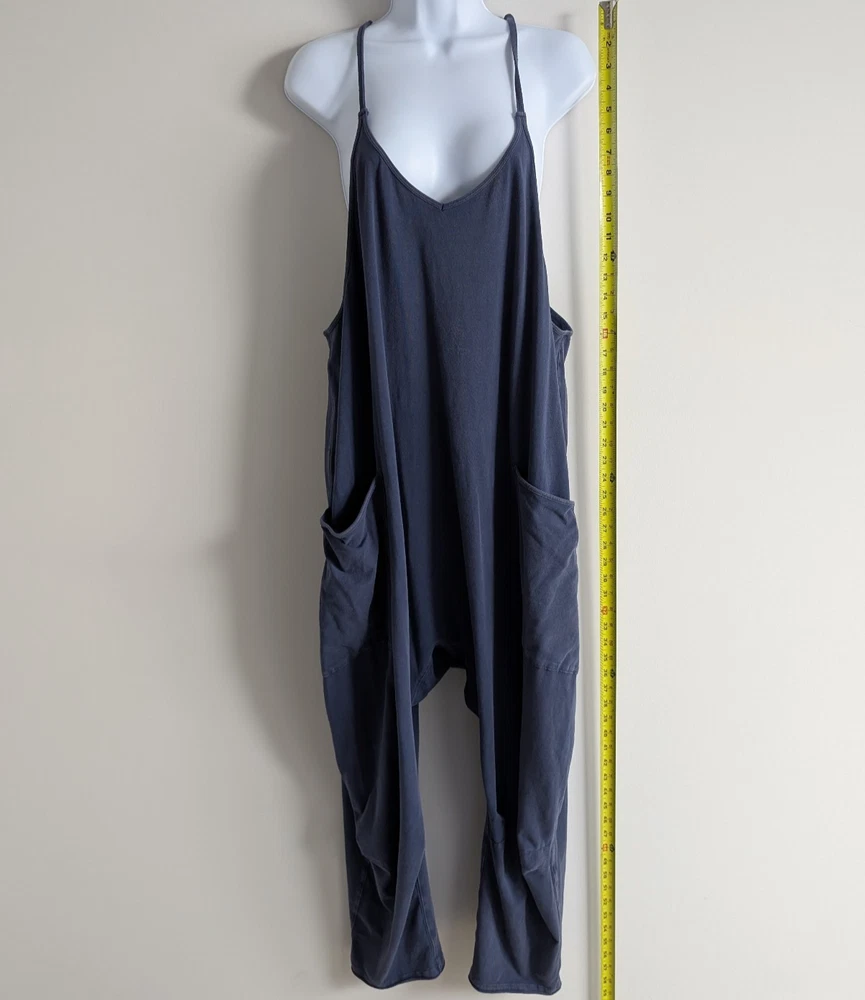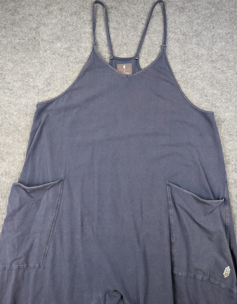 Brand: Free People FP Movement Size: S Size Type: Regular Department: Women Type: Jumpsuit Style: One-Piece / Lounge Jumpsuit Color: Blue Material: Cotton Blend (95% Cotton, 5% Elastane) Sleeve Length: Sleeveless Neckline: V-Neck Features: Adjustable Straps, Pockets, Stretch, Relaxed Fit Pattern: Solid Closure: Pullover Occasion: Casual, Lounge, Travel Condition: Pre-Owned