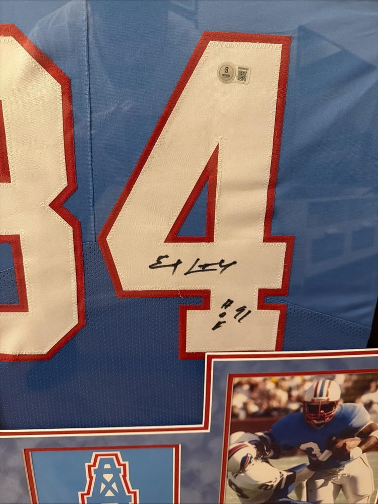 The product is an autographed 35x43 Houston Blue Jersey featuring Hall of Famer Earl Campbell. The autograph is authenticated by Beckett Authentication Services (BAS). This unique item is a must-have for fans of football and Earl Campbell, making it a valuable addition to any sports memorabilia collection.