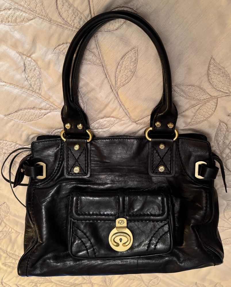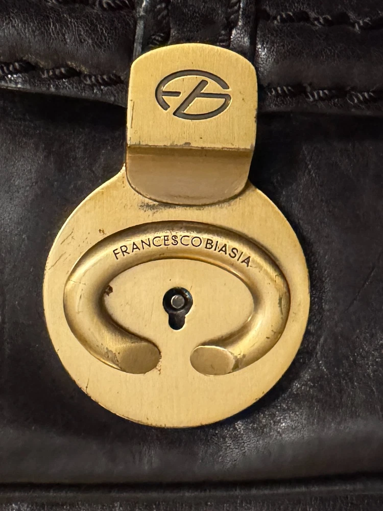 FRANCESCO BIASIA Black Leather Shoulder Bag Approximate Dimensions: 15"x10"x5" No stains or marks seen inside. Super soft leather Engraved hardware (No Key) Excellent Used condition. If You have any questions, please ask.