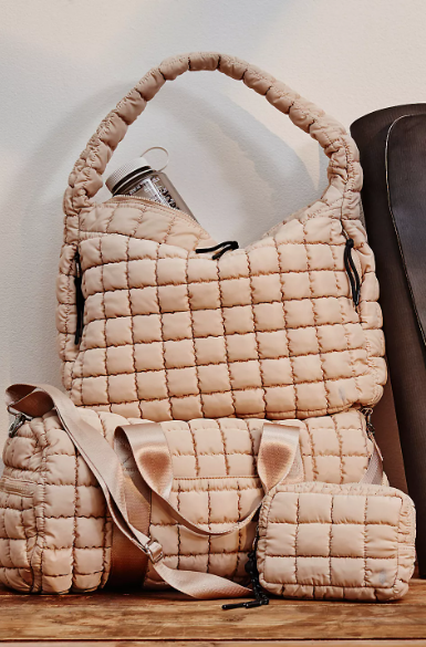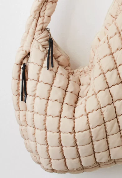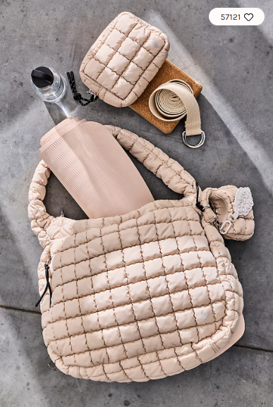 This bag is a total game-changer! The slouchy, quilted design is so stylish yet practical—perfect for gym runs, errands, or even a weekend trip. The interior is spacious with handy pockets, and the quality feels luxurious. Love the off-white color—it goes with everything! A must-have for effortless, everyday use.