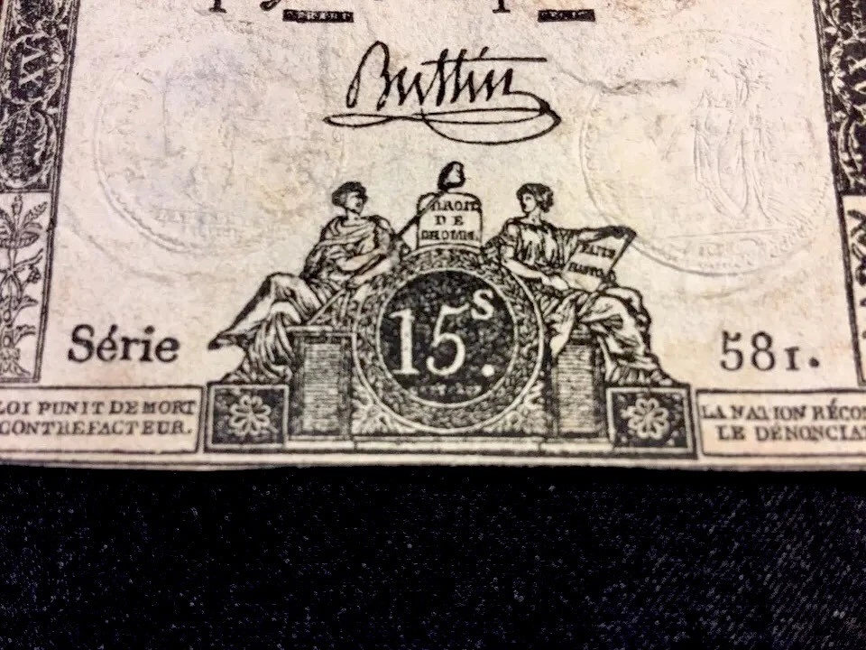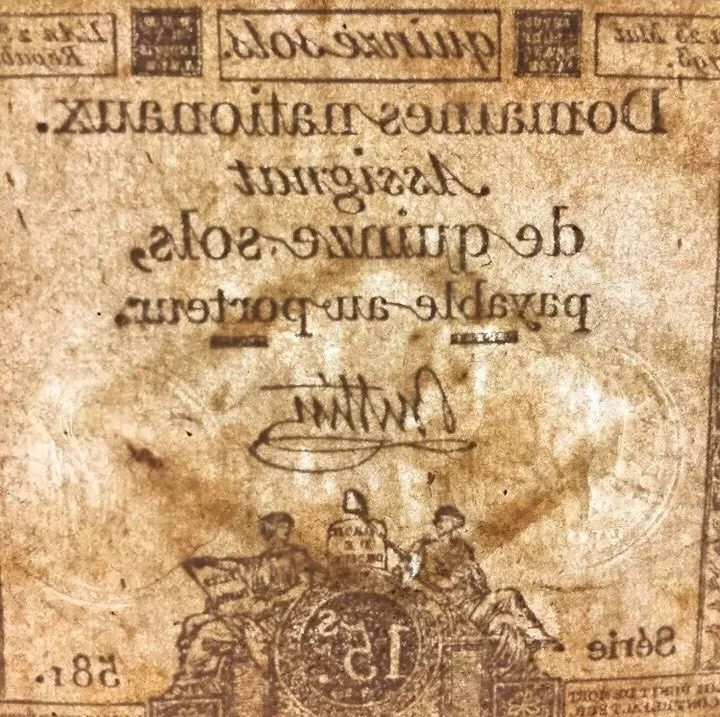 PRICE PER SINGLE BANK NOTE. Assignat , paper bill issued in France as currency from 1789 to 1796, during the French Revolution. In December 1789, to pay its immediate debts, the National Assembly issued the assignat as a bond bearing 5 percent interest, with the recently nationalized church lands as security. By September 1790 the Assembly made the assignat into a paper currency. The initial effect of the paper currency was beneficial, stimulating economic growth and eliminating a money shortage. But a deep public distrust of paper money and the fear that the currency would be worthless if the uncertain Revolutionary regime collapsed soon caused the assignat to depreciate. The outbreak of war with the other European powers in 1792 caused a further decline in the value of the assignat. In 1796 the assignats were replaced by the mandats territoraux (land warrants) at the rate of one mandat for 30 assignats. The failure of the mandat to gain public confidence forced the Directory to return to a metallic currency (February 4, 1797). Stamped and watermarked. Watermarked. Size: 3.5" x 3" See other items.
