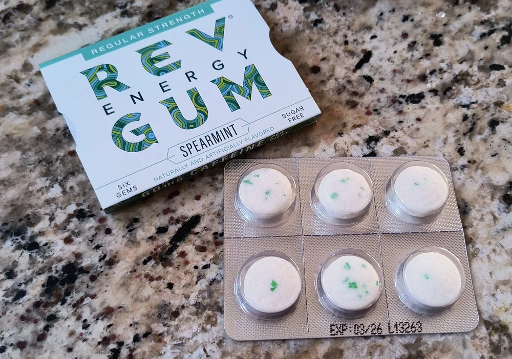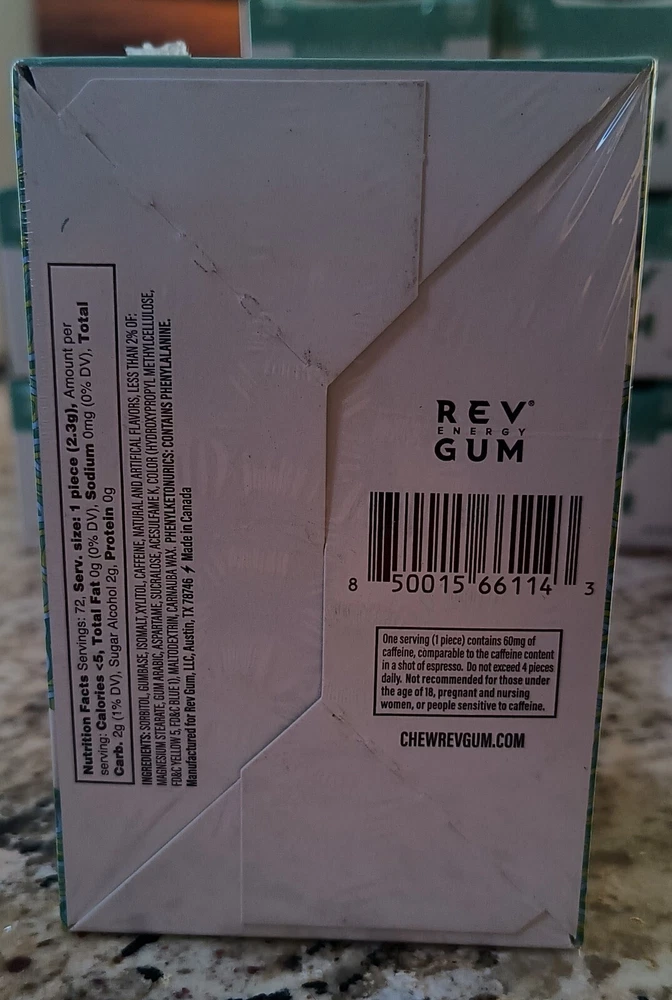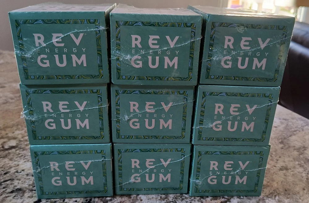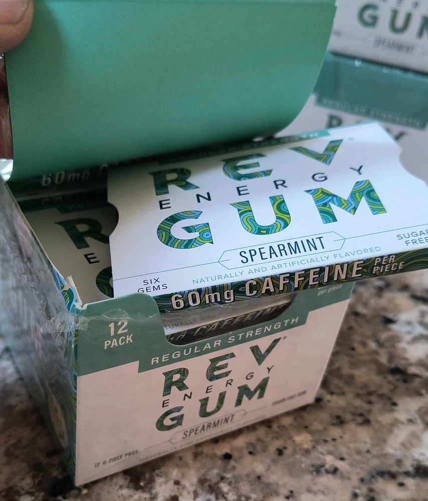 FRESH 12 Packs REV Energy Sugar Free Gum SPEARMINT Regular Strength EXP 03/2026. YOU GET ONE MASTER DISPLAY BOX OF 12 INDIVIDUAL PACKS OF 6 PCS / 72 PCS TOTAL. I have 9 total Display boxes, and since I couldn't see the EXPIRATION DATE on the outside of the sealed master display box, I opened one box (last photos). The last buyer will get the one which I opened, it was sealed. Free Shipping.