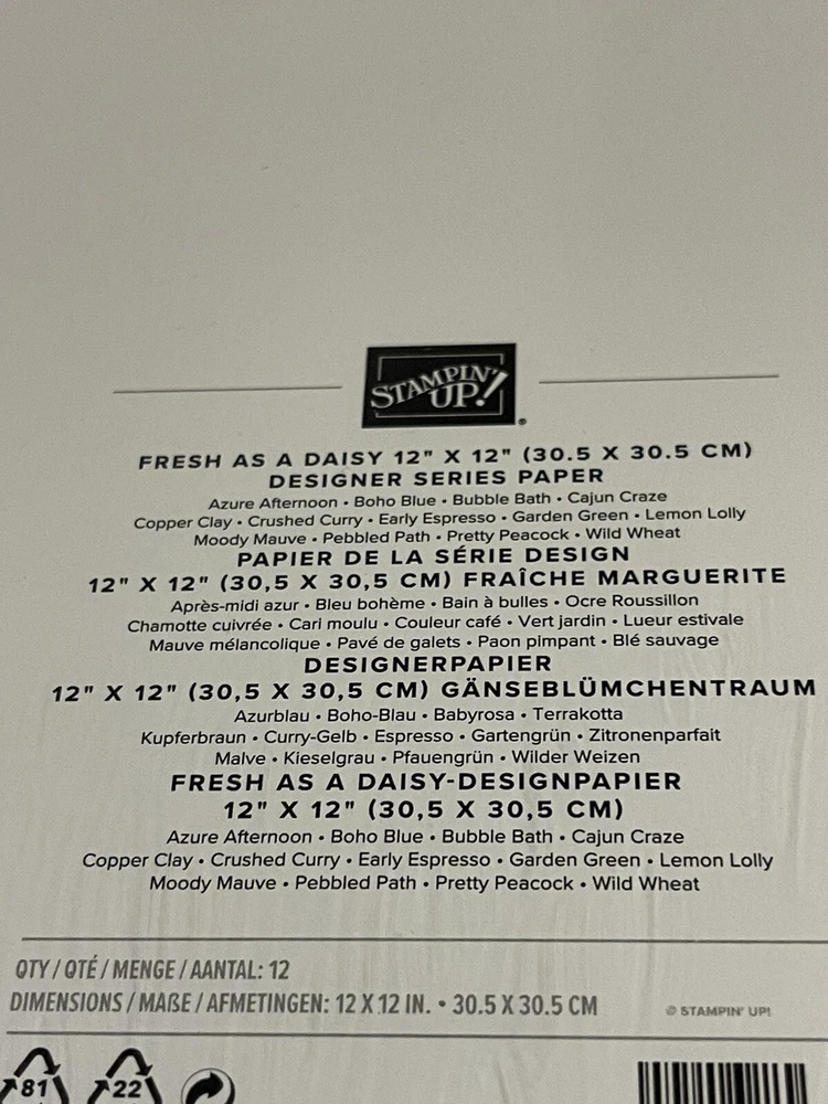 FRESH AS A DAISY Designer Series Paper DSP Stampin Up 12 X 12 Full Pack
