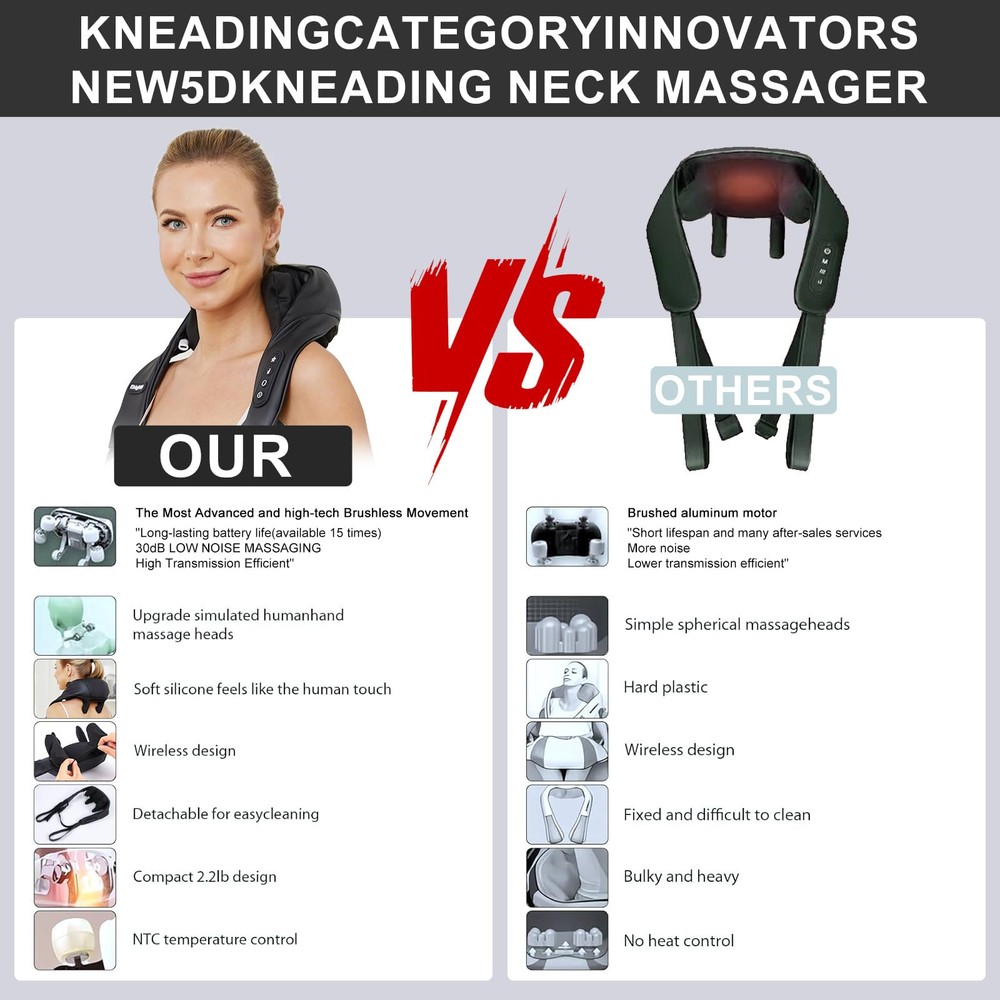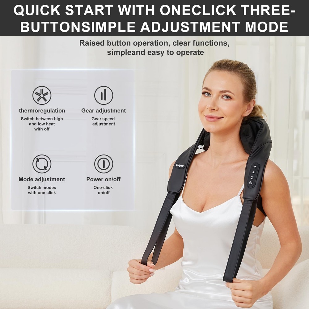 What Sets Us Apart? 🏆Brushless Motor/ 🏆Exclusive Patent/ We're ready for you: USB Wall Charger/ Noise Free Motor/ Vegan Leather/ Removable Cover/ Customer Support Kneading Category Innovators : New 5D Kneading Neck Massager(Exclusive Patent brushless Motor Design) .made of premium breathable mesh and PU leather,massager is the best Valentines Day Gifts for Him/Her/Boyfriend, Dads, Moms, or any lovers. Warming Tips: massagers are covered by a 1-year warranty. If you have any problem, firstly please feel free to contact us.Our massager ensures your peace of mind. 6 Massage Heads for All-round Massage: The Neck Massager utilizes innovative 6.0 massage nodes that provide wider massage coverage, targeting not only the neck but also the trapezius and shoulder muscles,Reach areas that other massagers can't. The soft silicone wrapped massage heads provide a gentle soothing touch, ensuring a comfortable and relaxing massage for your skin. Simulate Human Hand Grasping and Kneading: The ergonomic neck massager allows you to enjoy the ultimate relaxation. Mimicking the hands of a physiotherapist, it targets the deeper tissues for a thorough and invigorating massage to say goodbye to muscle fatigue, with 2 adjustable massage levels to suit your preferences and needs. Massagers For Neck And Shoulder With Heat: The heated neck massager provides faster, more consistent soothing heat (113°F). It dramatically relieves deep muscle tension, improves circulation and is up to 90% effectiveness in relieving chronic neck pain, nerve compression, migraines and TMJ. New Upgraded Adjustable Strap Design: Experience the freedom of hands-free massage with our unique backpack Neck Massager. Whether you are working at your desk or relaxing at home you can enjoy a soothing massage that weighs only 2.2lb without restricting or burdening your shoulders Sculpted For A Massage Experience Resembling Human Touch: Inspired by the techniques employed by professional therapists, the MINI Cervical Massager is expertly designed to provide targeted relief to your neck and shoulders, alleviating muscle fatigue akin to the touch of human hands. Optional Hands-Free Operation: Our Innovative Design ensures a completely hands-free experience, freeing you from the hassle of holding the massager while you enjoy its soothing effects. Unleash The Power Of Neck Massager :Experience The Difference With Our Premium Product,Standing On Its Own Without Comparing To Lower-Priced Alternatives. Muscle Therap/Tissue Therapy/Pain Relief/Flexibility Improvemen/Christmas Gifts for Lovers/Dad/Mum/Man/Girls