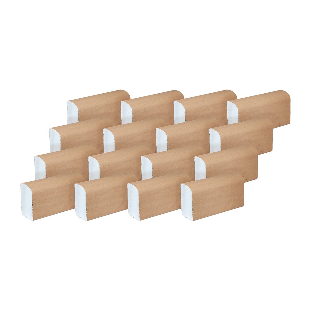 (16) Multifold Paper Towel Packs (150, 9.5' x 9.25' sheets per pack, 2,400 sheets total) Durable, highly absorbent, thick, 100% Virgin White paper, 1-ply design for reliable strength Compatible with any standard multifold paper towel dispenser Designed for away-from-home facilities such as, high-traffic commercial buildings, commercial kitchens, offices, restaurants, break rooms, schools, hotels and healthcare Folded and stackable for use in an open tray or wall-mounted dispenser FSC Certified