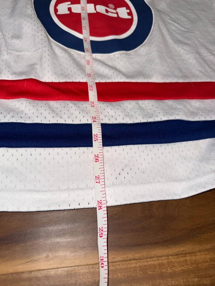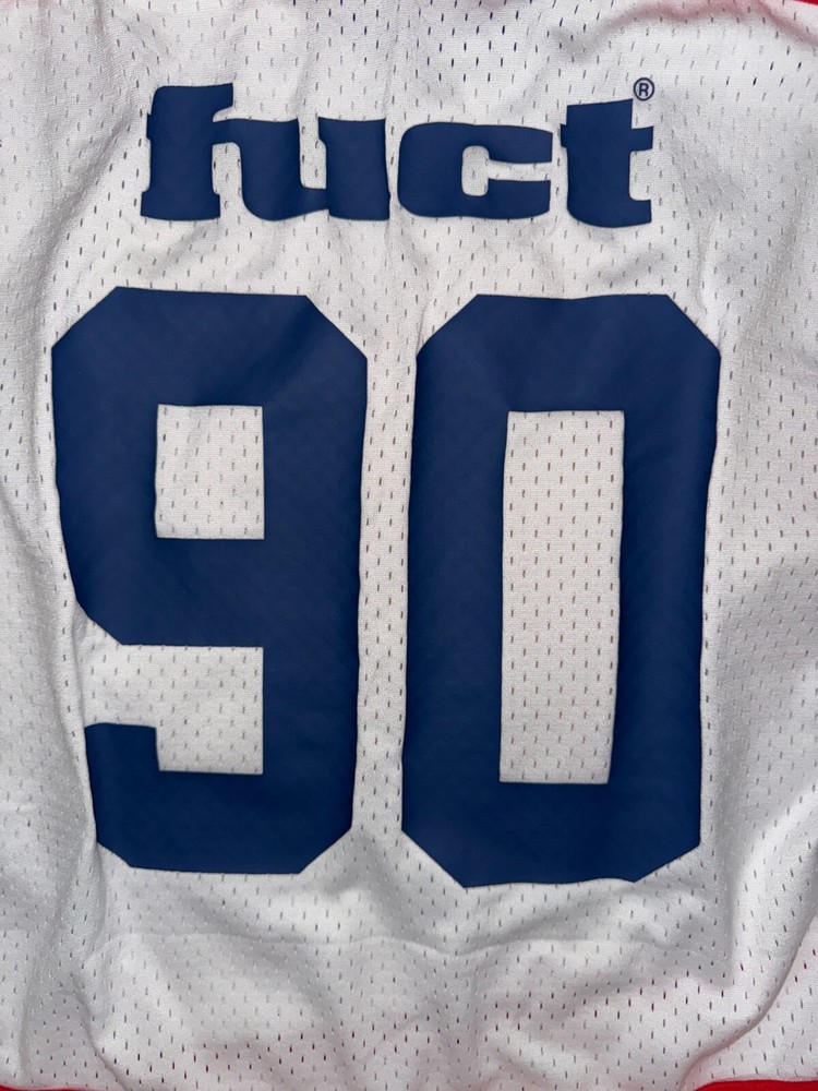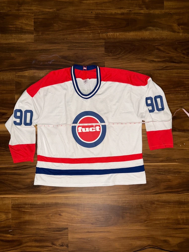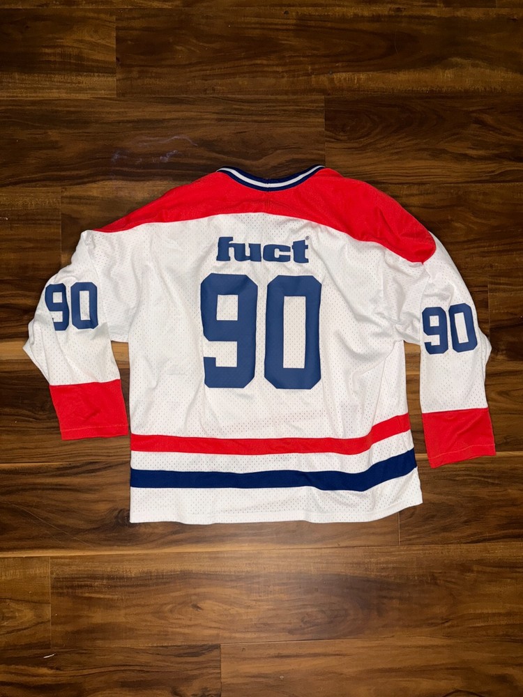 Step into the world of legendary streetwear with this FUCT hockey jersey , a rare and bold piece that channels vintage sports aesthetics through a rebellious lens. Featuring the iconic Edmonton Oilers-inspired colorway —crisp white base, striking red shoulders and cuffs, and bold navy detailing—this jersey blends counterculture cool with classic hockey style. 👕 Details: Size: Large (Measured: 26" pit-to-pit, 29" length) Brand: FUCT Colorway: White / Red / Navy (Oilers style) Material: Lightweight, breathable mesh Double-sided print: "fuct" logo + "90" on front, back, and sleeves Excellent pre-owned condition 🔥 Why This Jersey Is a Must-Have: FUCT is not just a brand—it's one of the most influential names in American streetwear history . Founded in 1990 by Erik Brunetti, FUCT (an acronym for “Friends U Can’t Trust”) pioneered a raw, anti-establishment aesthetic long before it was mainstream. From bootleg-style graphics to politically subversive messaging, FUCT is a streetwear OG that helped shape modern design language in brands like Supreme, HUF, and Stüssy. This jersey is a tribute to FUCT's fearless originality —part throwback sportswear, part street culture iconography. With the bold “fuct” typeface centered in a circle logo and the number 90 commemorating its founding year, this piece is drenched in meaning and attitude. 💥 What Makes FUCT Special: 🚫 Anti-corporate DNA: FUCT built its following by going against the grain—this isn't fast fashion. 🎨 Design legacy: Erik Brunetti is revered for his controversial, bold art direction that helped streetwear evolve. 🧠 Cultural weight: Worn by skaters, artists, and rebels alike—FUCT was and is a statement. 📸 Style & Fit: Whether you’re rocking this on the street, layering it with a hoodie, or hanging it as a collector's piece, this hockey jersey delivers. With a roomy fit and breathable material, it’s both wearable and collectible—a true grail for vintage heads and streetwear historians alike. 🎯 Don't miss your chance to own this rare piece of FUCT history. These jerseys do not come up often—and when they do, they move fast. Tap into the roots of streetwear with this authentic, original, and unapologetic piece. 📦 Ships fast with care. Buy with confidence. #FUCT #FUCTJersey #StreetwearOG #VintageFUCT #HockeyJersey #OilersColorway #90sStreetwear #RareFind #MensFashion #GrailedStyle #MeshJersey #CollectorsItem