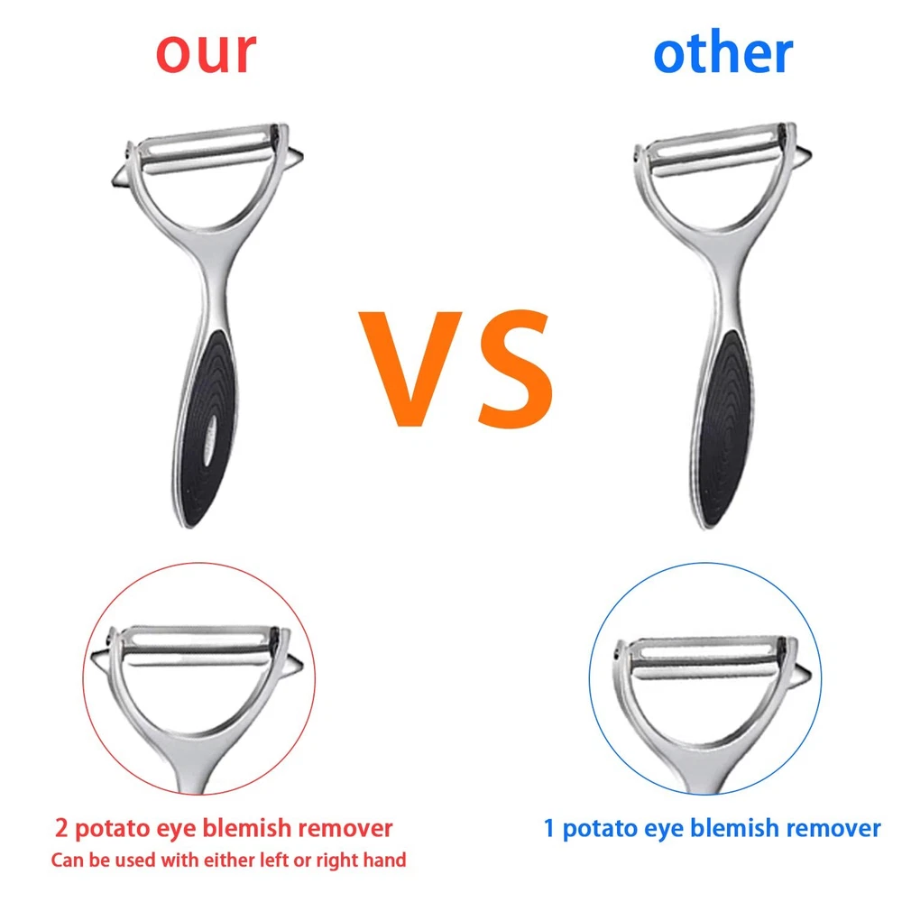 FUHUY Vegetable, Apple Peelers for kitchen, Fruit, Carrot, Veggie, Potatoes Peel Features: 【Multi-Purpose Vegetable Fruit Peeler】 best for potato, vegetable, apple, veggie, carrot, mango, cucumber, tomato, onion, pear and more. Built-in potato-eye remover, high-quality kitchen utensils peeler. 【Dishwasher Safe & High Quality Material】The top high-quality rust-free carbon steel metal blade which better than stainless steel, and the zinc alloy body guaranteed non-rust, High-quality and anti-corrosion, dishwasher safe and easy to store. 【Ergonomic Design】Streamlined design makes peeling action smooth, meanwhile, the hand (Left Hand and Right Handed) won't feel uncomfortable, also good for arthritis hands. 【Peels Easy And Save Time】Ultra-Sharp wide swivel slade can maintain minimal resistance when peeling, and perfect fit the fruit or vegetable skin, won't clog with peels, save both time and labor! 【Good Grip and Non-Slip】The rubber part will keep the handle non-slip when your Hands or Peeler get wet. Y Shape Blade holder Can stably control the Peeler so that the blade is stressed uniformly and remove the skin correctly, perfect for both right and left hand. Features: 【Multi-Purpose Vegetable Fruit Peeler】 best for potato, vegetable, apple, veggie, carrot, mango, cucumber, tomato, onion, pear and more. Built-in potato-eye remover, high-quality kitchen utensils peeler. 【Dishwasher Safe & High Quality Material】The top high-quality rust-free carbon steel metal blade which better than stainless steel, and the zinc alloy body guaranteed non-rust, High-quality and anti-corrosion, dishwasher safe and easy to store. 【Ergonomic Design】Streamlined design makes peeling action smooth, meanwhile, the hand (Left Hand and Right Handed) won't feel uncomfortable, also good for arthritis hands. 【Peels Easy And Save Time】Ultra-Sharp wide swivel slade can maintain minimal resistance when peeling, and perfect fit the fruit or vegetable skin, won't clog with peels, save both time and labor! 【Good Grip and Non-Slip】The rubber part will keep the handle non-slip when your Hands or Peeler get wet. Y Shape Blade holder Can stably control the Peeler so that the blade is stressed uniformly and remove the skin correctly, perfect for both right and left hand. eBay integration by