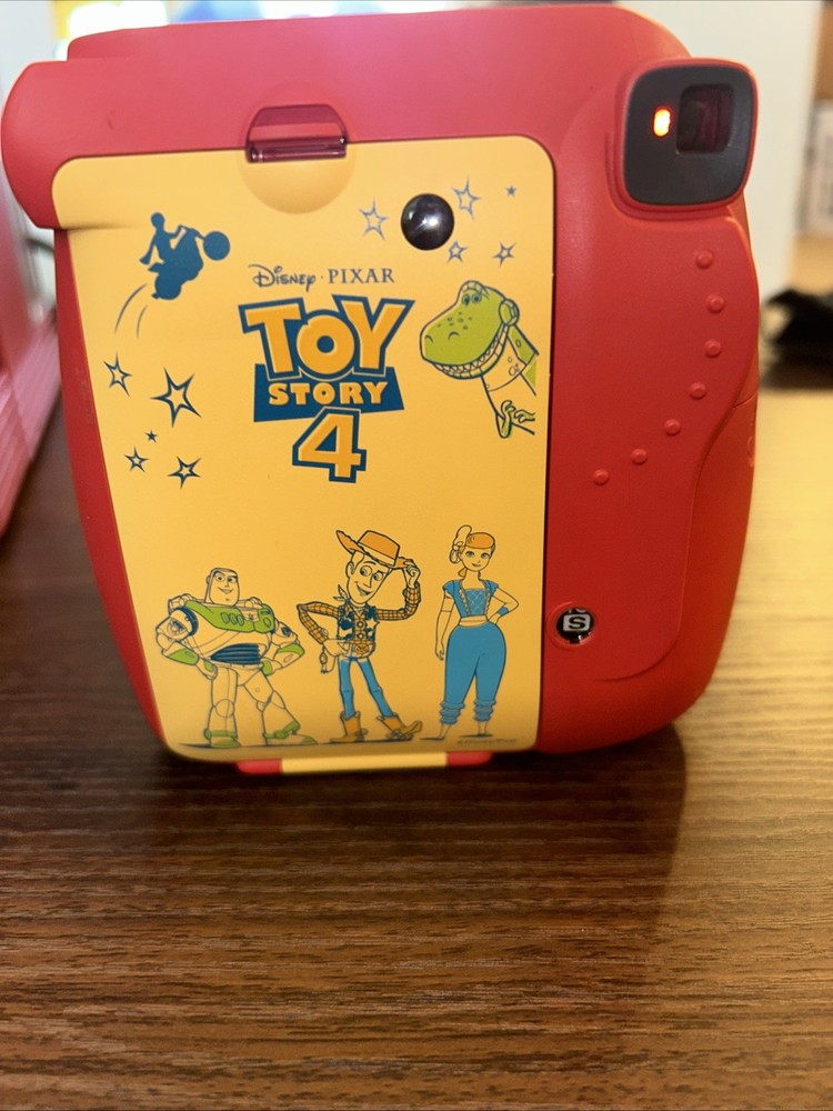 The FUJIFILM Instax Mini 9 Toy Story 4 Instant Camera in Red Limited Edition with a manual focus and built-in flash, never had any problems developing pictures. Comes with original instructions and bag, accessories not included.