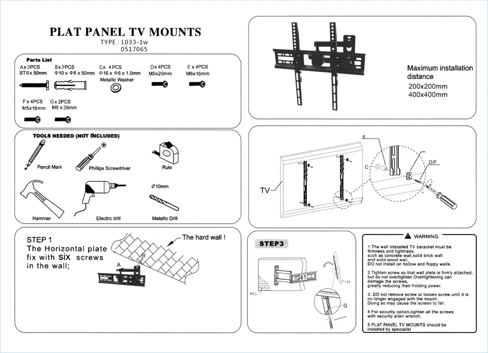 This Full-motion mount accommodates most 26"-55" flat panel TVs up to 77lbs. This mount extends out 14" from wall and allows full-motion capabilities. Full motion allows maximum flexibility — tilts and swivel your TV for easy viewing from any seat in a room. Its post-installation leveling adjustment ensures the TV is perfectly positioned on the wall. Integrated cable management system keeps cables organized and protected. FITS MOST SCREEN SIZES 26" - 55" Screen size support used as a general guideline only. Actual fit is determined by the VESA measurements and weight capacity of this mount. VESA measurements are your mounting hole distance on the back of your TV Supports TVs up to 77lbs (Triple Tested) Includes all mounting hardware required to install mount onto wall. Common screws included to install TV onto mount. These included screws will fit 95% of TV on the market. If you TV requires special screws, they will need to be purchased separtly from a hardware store. TV tiles +3/- 15 degrees Swivels freely from side to side VESA mounting compliant Max TV to wall distance: 14" Saftey Retaining Screw Color: Black Single stud mountable. Cable Management Great for corners