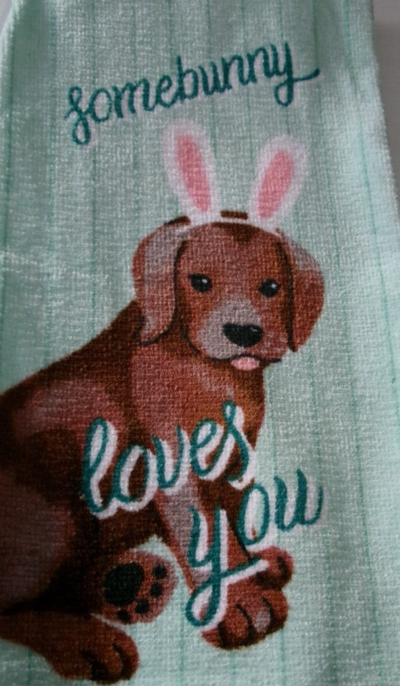 FULL UNCUT SOMEBUNNY LOVES YOU Print Cotton Kitchen Towel measures 16 x 26 inches Check out my other items ! I do combined shipping !!!! PLEASE WAIT FOR INVOICE WHEN PURCHASING MULTIPLE ITEMS SO I CAN SEND COMBINED SHIPPING TOTAL... THANK YOU FOR STOPPING BY !!!! I do combined shipping on all my items purchased and/or paid for within a 1 day ..IF you pay for items before getting a combined invoice please contact me about getting the discount refund ... IF YOU DON'T GET A REFUND WITHIN 3 DAYS MESSAGE ME .. THANK YOU !!! .