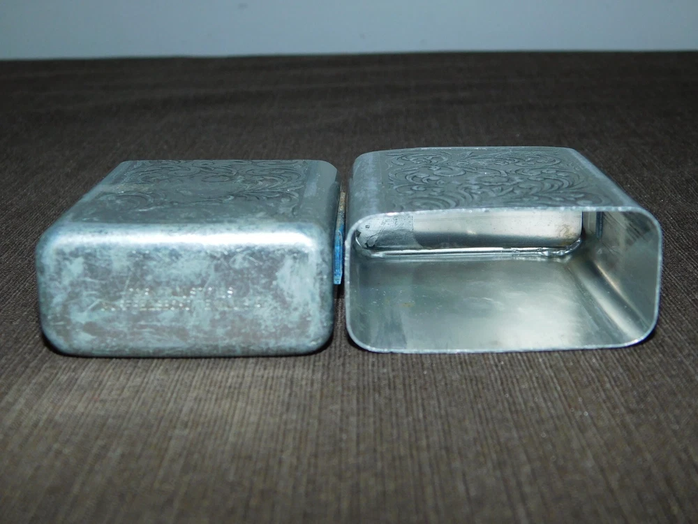 YOU ARE BIDDING ON..... VINTAGE TOBACCO PARK IND FLOWER SCROLL METAL CIGARETTE CASE .......... ..SHOWS USAGE/ HANDLING/AGE WEAR.HAS SCRATCHES/PAINT LOSS/AGE DISCOLORATION....PLEASE LOOK CLOSELY... PLEASE VIEW PHOTOS FOR CONDITION.***PLEASE E-MAIL IF YOU HAVE A QUESTION OR WANT AN ADDITIONAL PICTURE....PLEASE VISIT MY EBAY STORE FOR ADDITIONAL VINTAGE ITEMS..THANK YOU***1W-BX6446-XXXX
