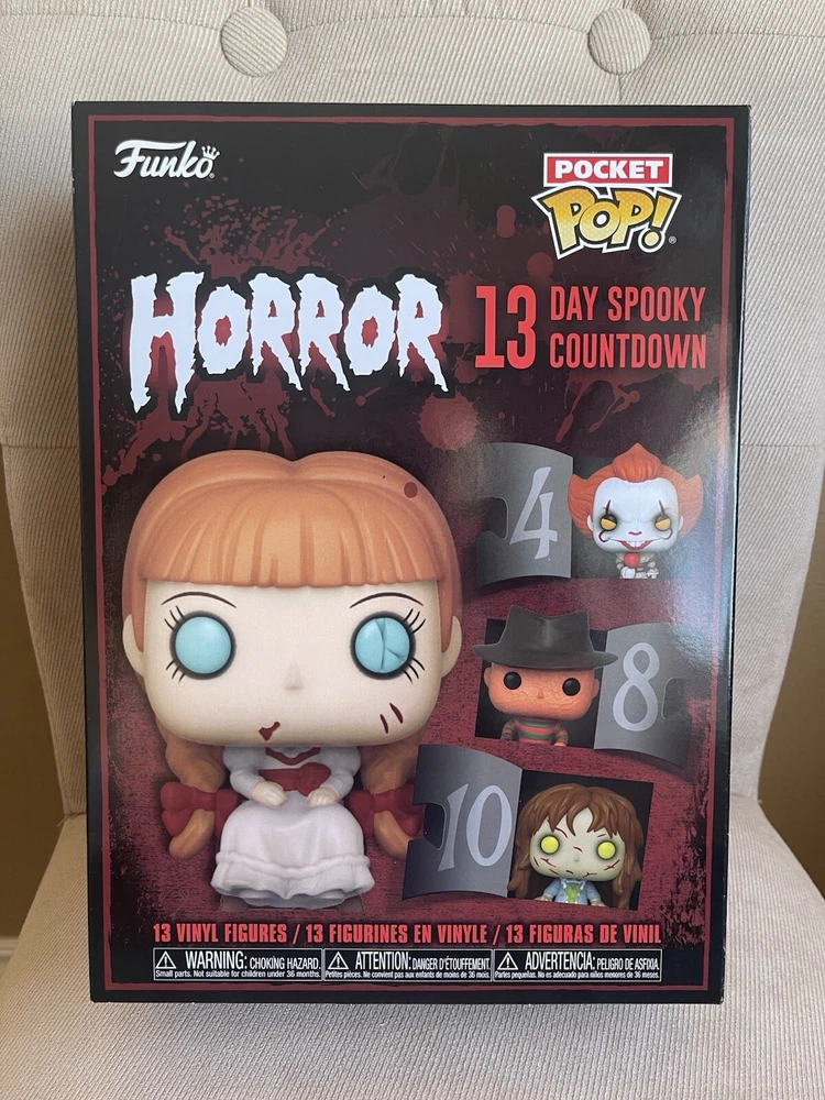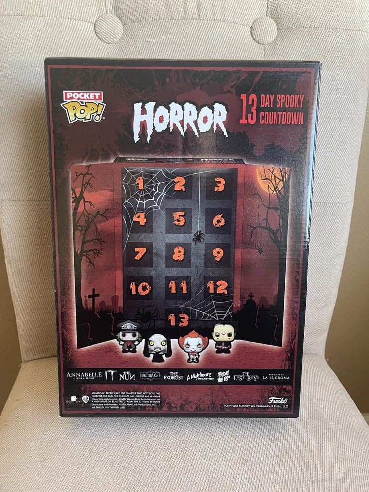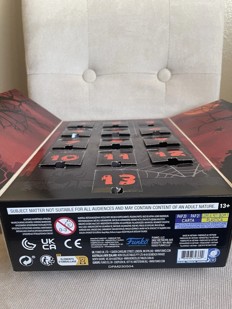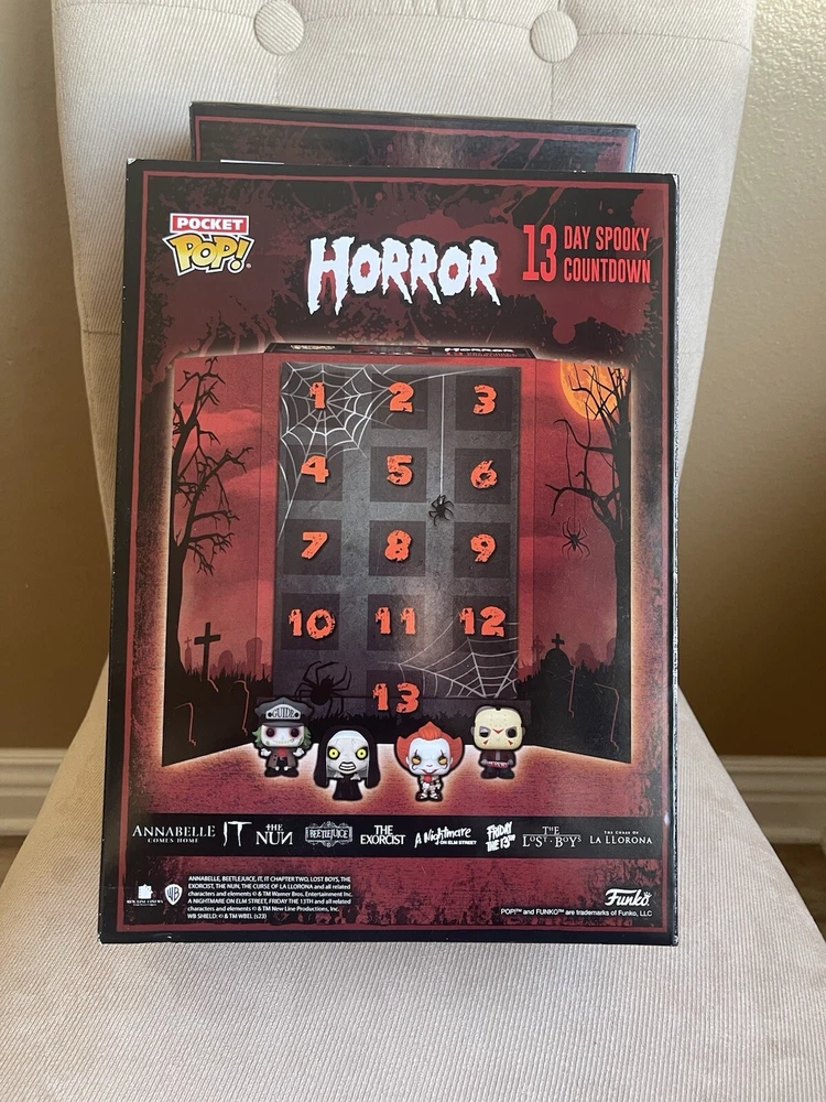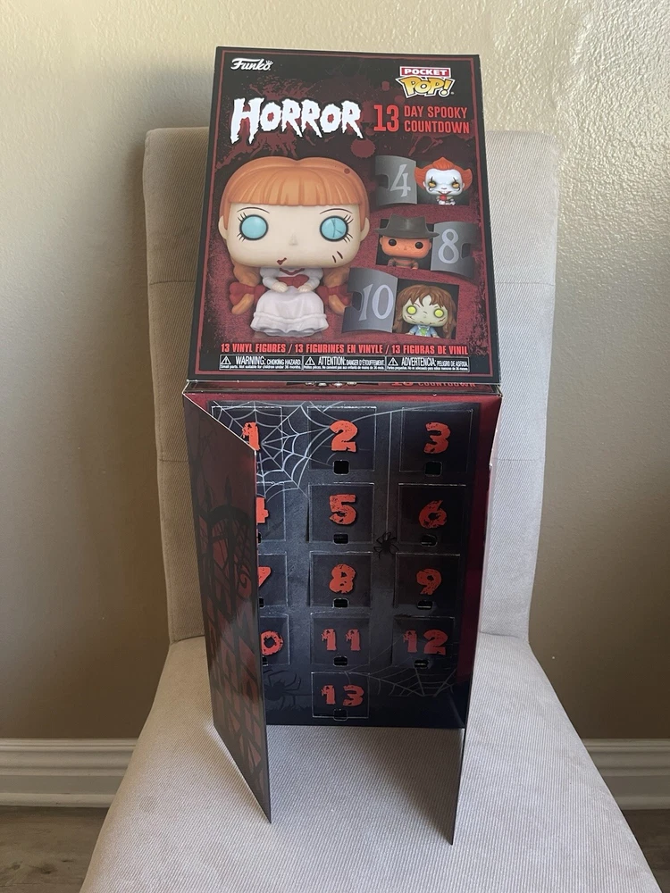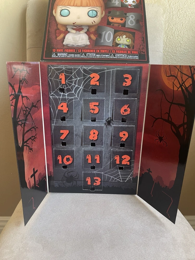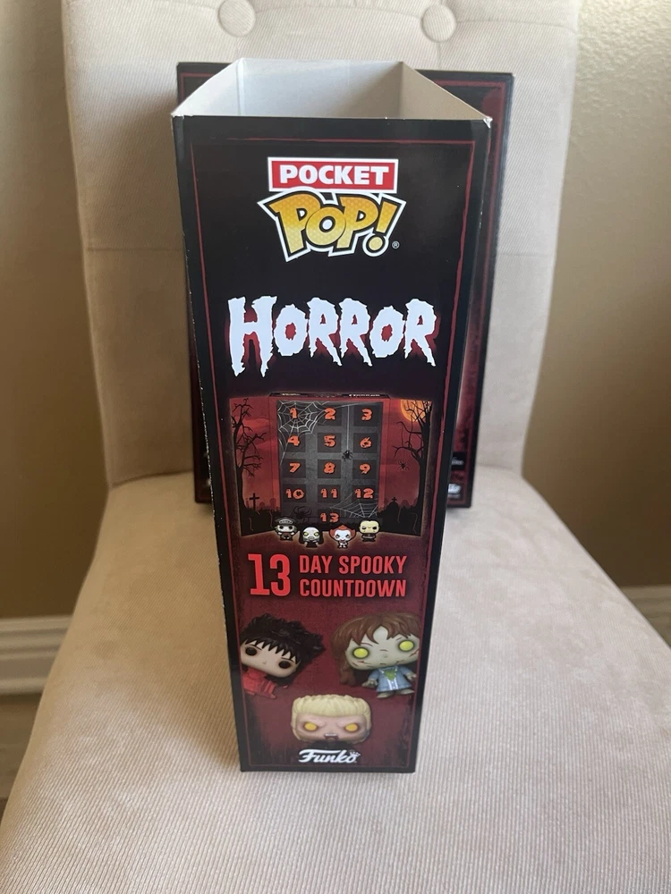 This is for an EMPTY box of Funko Horror 13 Day spooky countdown calendar. Great for any horror fan to use as decor or to put up your horror funkos around it! I also have some original mini funkos that came in this box listed and if you are interested please check them out! I will throw in 1 FREE mini horror funko pocket pop with purchase of the EMPTY horror funko box as a starter!!