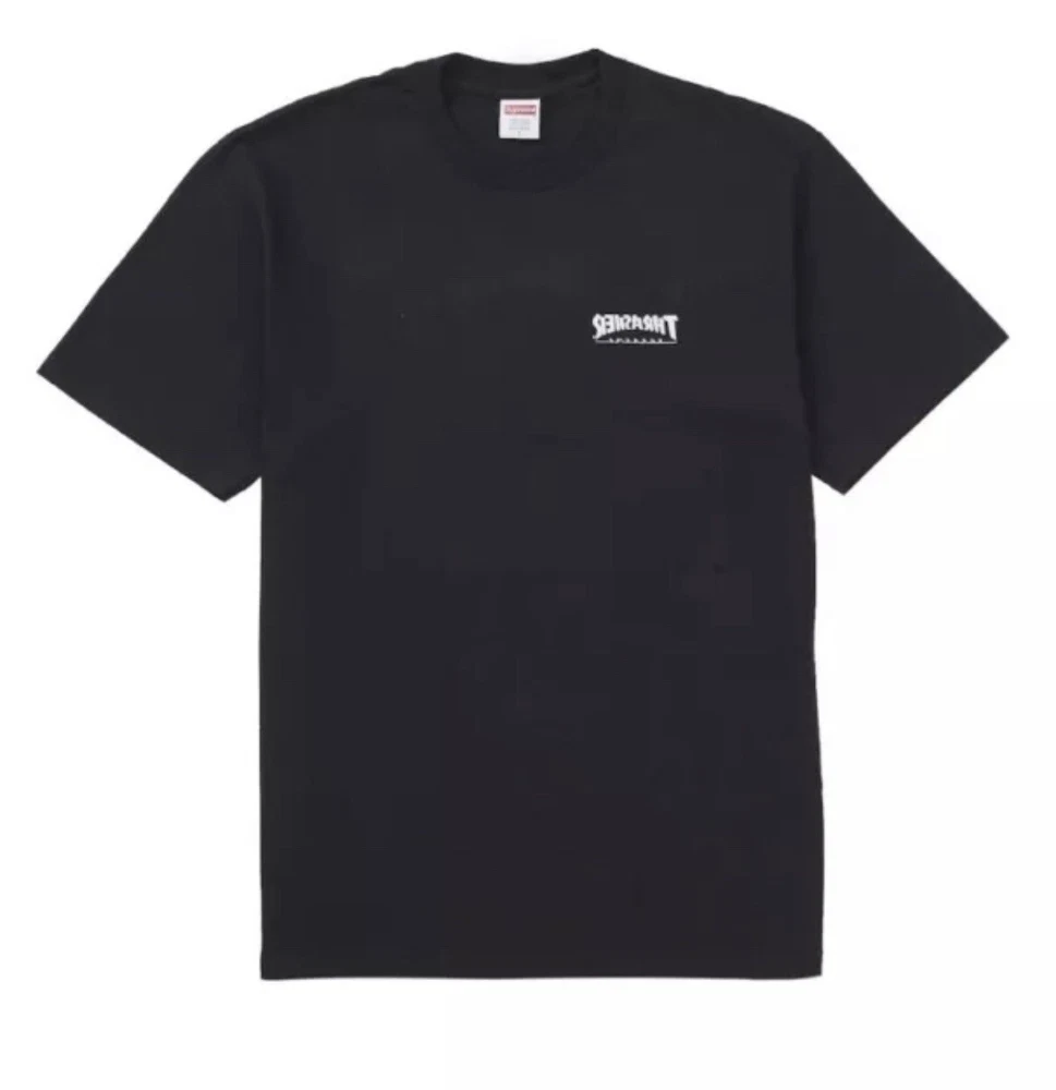 Introducing the FW24 Supreme x Thrasher Cross T-Shirt, a limited edition item featuring a solid pattern with short sleeves and a crew neckline. This black cotton t-shirt is perfect for any skater girl or boy who loves the Thrasher theme. The shirt is available in size small, and it comes in a pack of 1. This Supreme x Thrasher Cross T-Shirt is a must-have for any fan of the Thrasher brand. It is a regular fit and suitable for all seasons. The t-shirt features the iconic Thrasher logo and is part of the Supreme x Thrasher product line. It is perfect for any unisex adult. The shirt is made in the United States and is a unique item that is perfect for any collector.