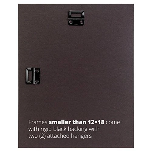 Contemporary style, matte black smooth finish Frame includes: clear styrene facing, rigid cardboard backing and wire hanging hardware kit (some assembly required) Fits a 18x24 Photo/Print/Poster (Viewable area is slightly smaller) Frame molding is 0.765 Inch wide, Wood composite material Frame measures 18 Inch by 24 Inch
