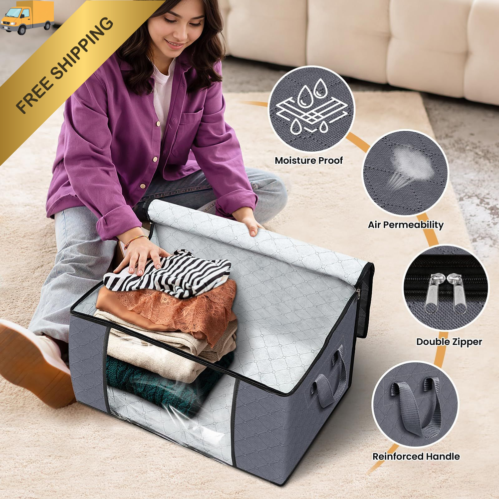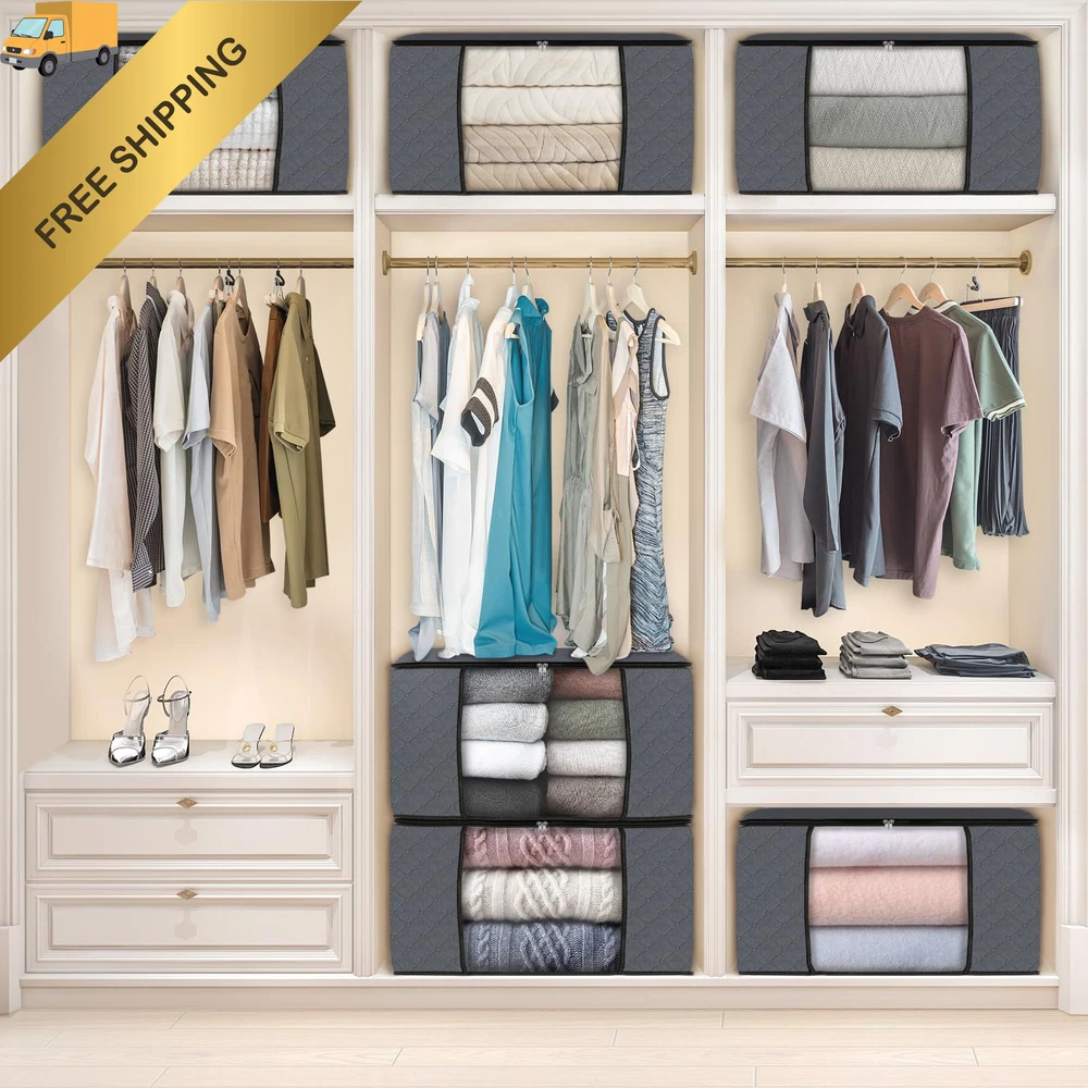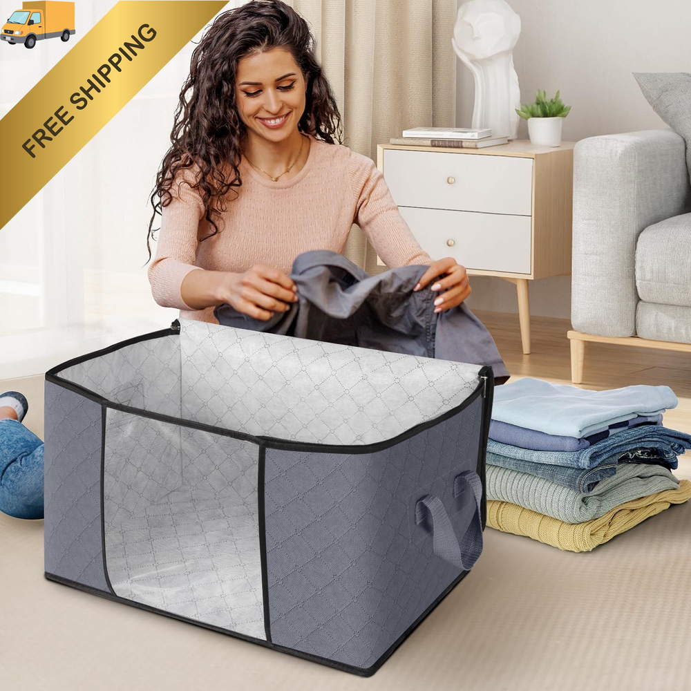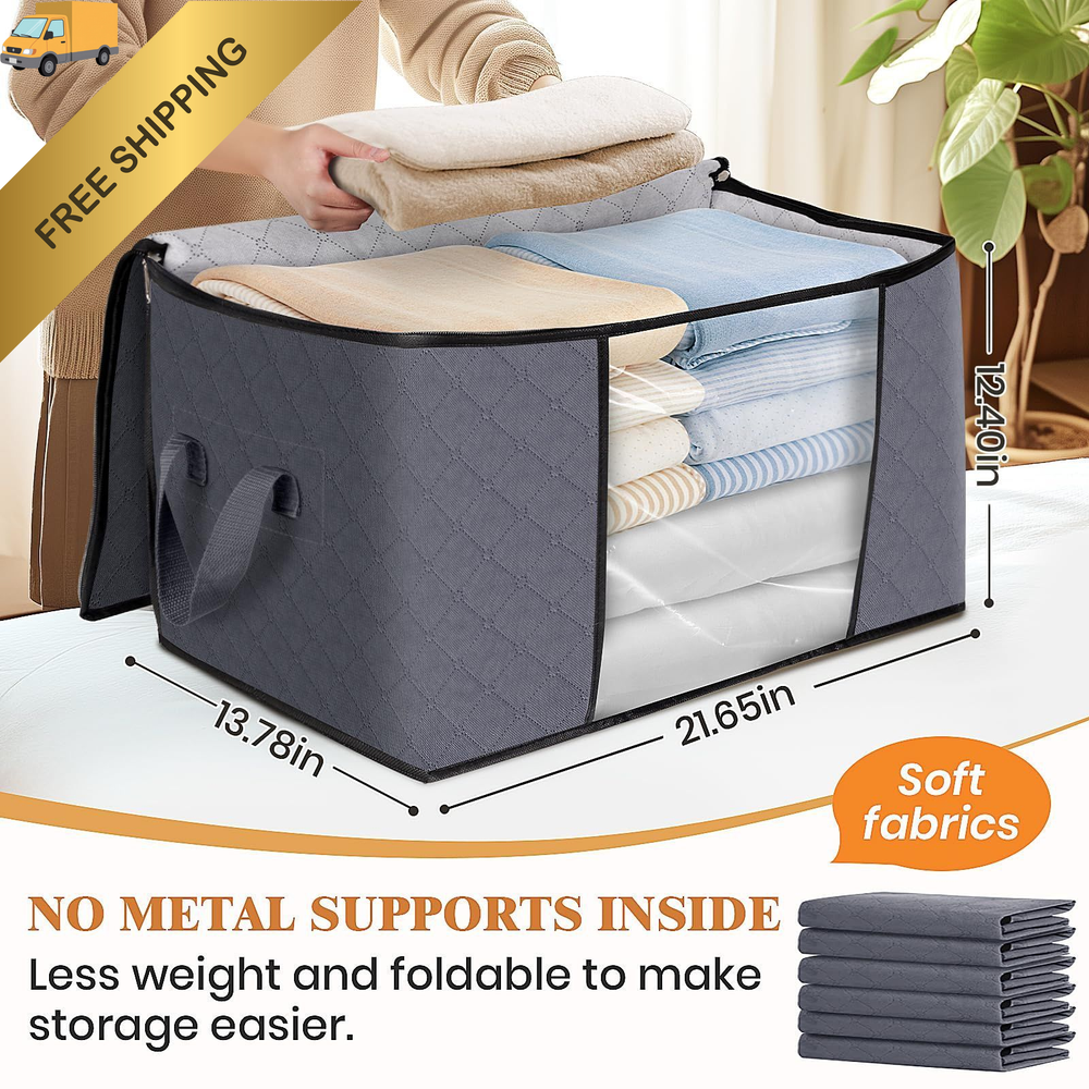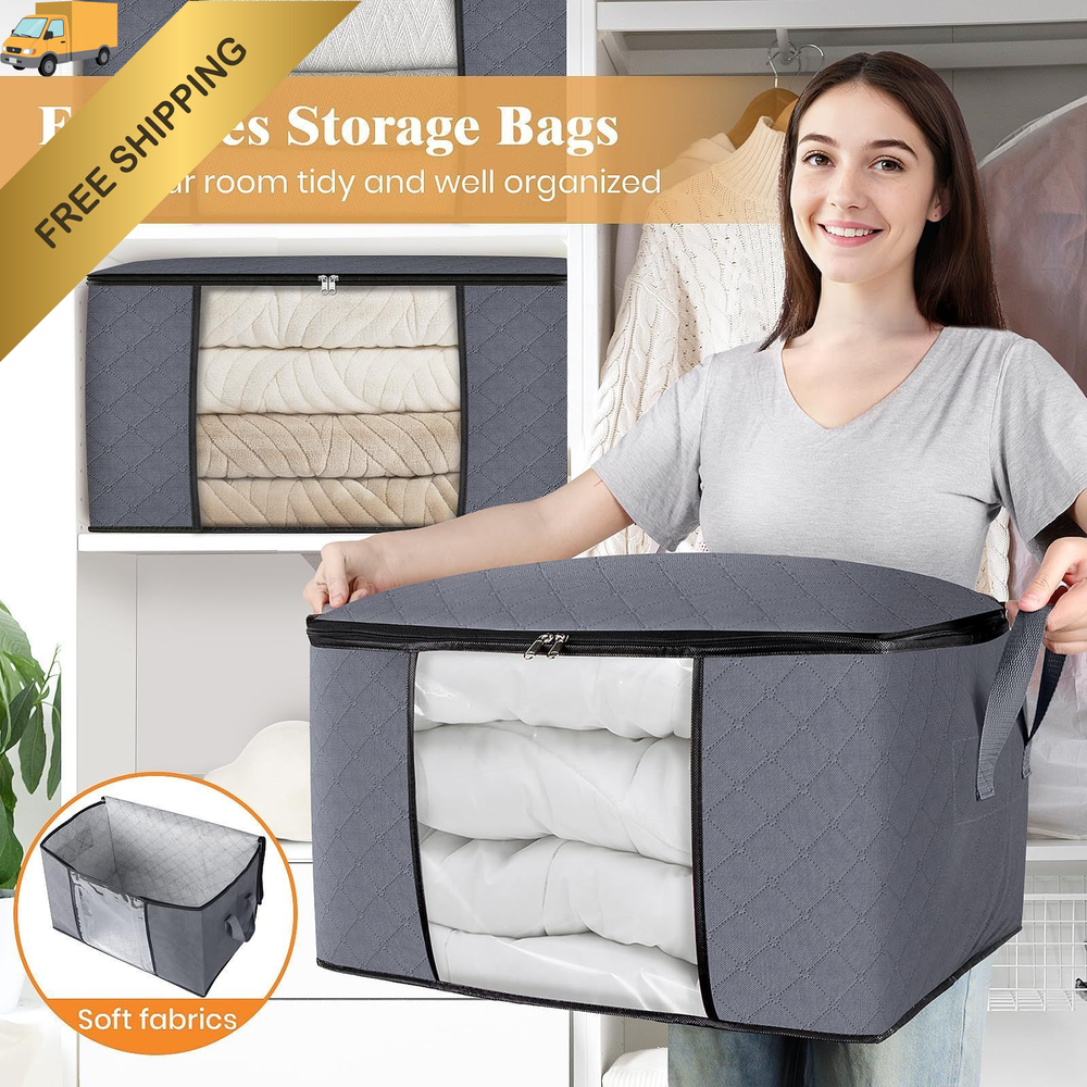 Fab totes Storage Bags,Clothes Blanket Bins Foldable 6 Pack-60L, Grey
