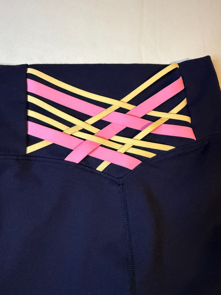 Fabletics Boost PowerHold High-Waisted 6'' Shorts Womens Small Navy Crisscross Pre-owned, exact items on photos