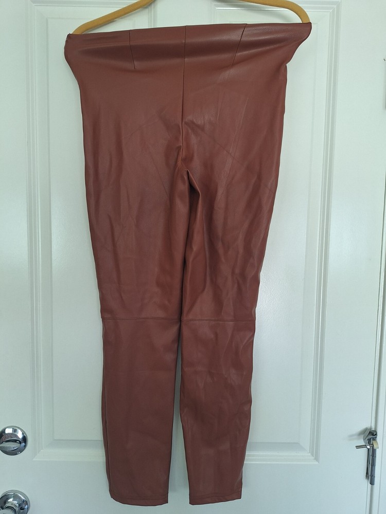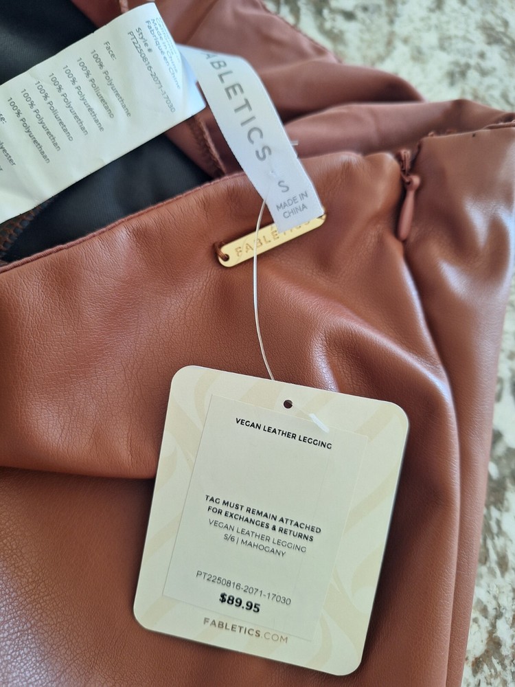 Fabletics Leggings Vegan Faux Leather High Rise Brown Womens Small