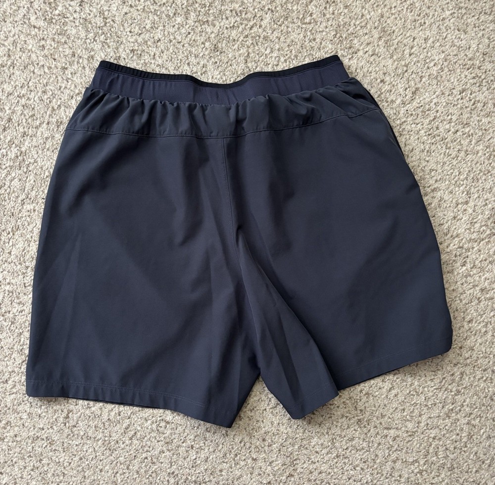 The Fabletics Shorts Mens Size Medium in Navy Gray are the perfect combination of comfort and functionality for any man's activewear collection. These athletic shorts feature a drawstring closure, elastic waist, and moisture-wicking fabric to keep you dry and comfortable during your workout. With a 7-inch inseam and a solid navy blue color, these shorts are suitable for all seasons and activities, whether it's gym training or a jog. The blend of polyester and spandex materials provides a stretchy and secure fit, while the brand's reputation ensures quality and performance in any outdoor or sports setting.