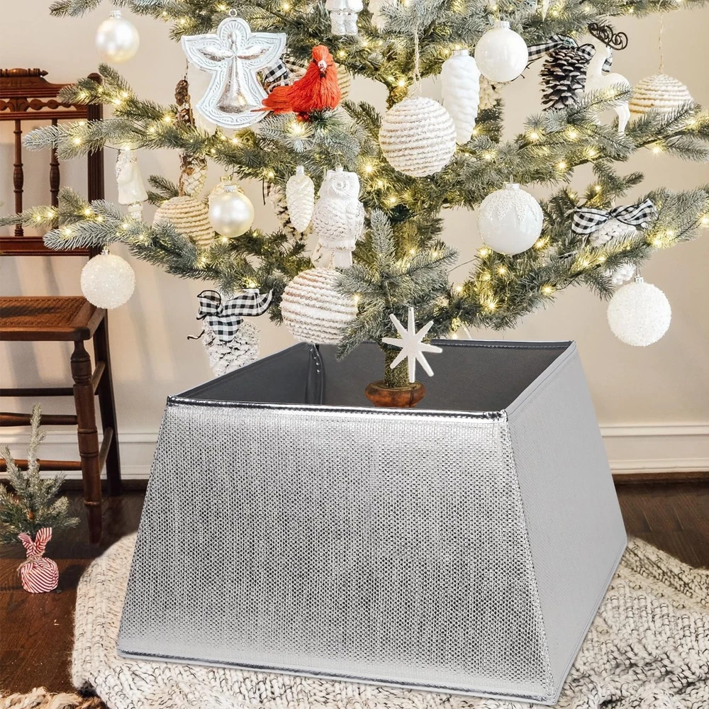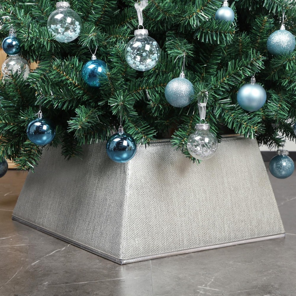 27in Adjustable Silver Metal Christmas Tree Collar for Holiday Decor