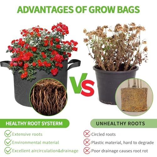 Return Policy Fast Delivery Trusted seller Fabric Grow Bags,3 Gallon-10 Pack Vegetable/Flower/Plant Growing pots Indoor and Outdoor Flower Pots,Aeration Plant Container Felt Grow Pots with Handles Non-Woven Product Description 【3 Gallon Grow Bags】:Ideal for growing tomatoes and strawberries, bell peppers and more, and the price of a pack of 10 is a better deal than any other planter. Planting bags make a practical gift for gardening enthusiasts. 【Highly Practical】:Grow bags provide excellent airflow and drainage. Increased airflow and faster drying times improve oxygenation to the roots of your plants, allowing them to breathe freely and grow healthier! In addition you can water your plants through the side of the fabric. 【Portable Garden Solutions】: The reinforced handles are X-stitched to hold more weight and ensure that you can support a bag full of soil. You can easily move them in and out of sun and shade to accommodate changing sun or weather conditions. 【Reasons for choice】:Planting bags as compared to plastic pots not only provide ample space for root spreading and t is no root rot from standing water, these are highly recommended to grow your vegetable garden in an economical way. 【Reusable】: Non-woven garden fabric planting bags are made of thickened non-woven material, durable, abrasion-resistant, washable and worth using all year round. Sturdy structure, can be reused for many years. Shipping Returns Payment Shipping Shipping is FREE to all addresses other than APO/PO boxes in the lower 48 states. All our stock ships from US-based warehouses. Shipped via USPS or UPS (depending on location and package weight) Unless stated otherwise, all orders will ship within 24-72 hours of your payment being processed. Check our feedback to see the great reviews of FAST shipping we offer. Returns Seller does not accept returns Payment We currently accept payment via eBay managed payments only. Once payment is cleared, we will dispatch your shipment within 1-3 business days. Please refer to the "Shipping" tab for more information regarding shipping speed to your destination.
