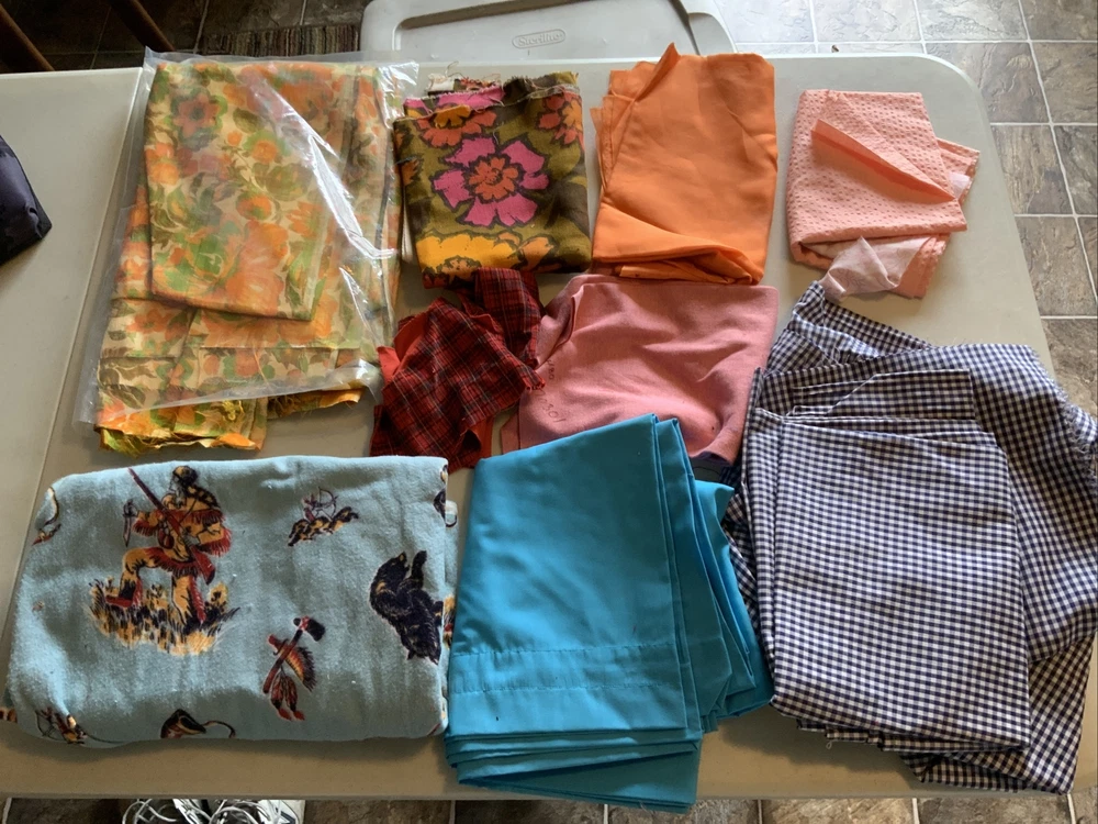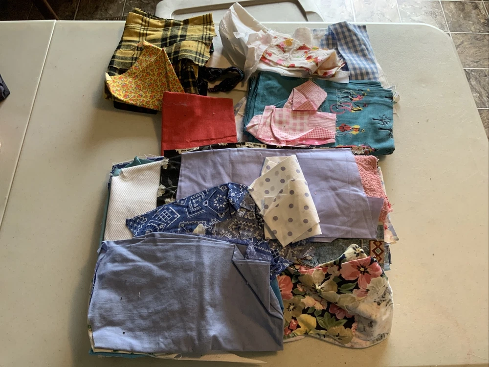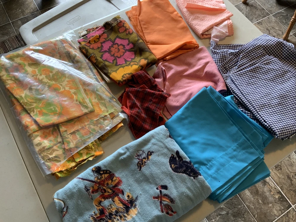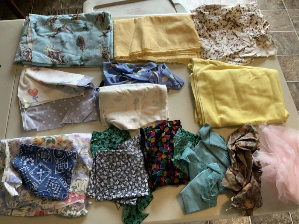 Fabric Lot Eclectic Mix Remnants Panels Vintage Floral Material Quilt Sewing Used condition. This is old and possible worn material. There might be stains or rips and tears. No foul or smoky smells. All material and items in the pictures are included with lot.