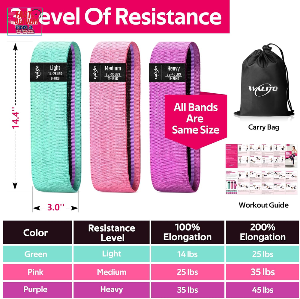 Store New Arrivals Add to Favorite View Feedback Contact Resistance Bands for Legs and Butt, Fabric Exercise Loop Bands Yoga, Pilates, Rehab, Fitness and Home Workout, Strength Bands for Booty Description Tension Level Green 14-25lbs, Pink 25-35lbs, Purple 40-50lbs Style Resistance Bands for Women and Men Number of Items 3 Warranty Description 1year Package Weight 0.36 Kilograms Unit Count 3.0 Count Material High Elastic Band Suggested Users unisex-adult Item Package Dimensions L x W x H 8.15 x 3.7 x 3.03 inches Included Components 1* Training Guide, 3 * Resistance Bands, 1* Carry Bag Item Thickness 0.18 Inches Number of Resistance Levels 3 Item Weight 11.2 ounces Special Feature Non-Break, Non-Slip, Won't Pinch Bare Legs Part Number booty-1 Sport Physiotherapy, Exercise and Fitness, Yoga, Pilates, Body Building Item Dimensions LxWxH 14.3 x 2.95 x 0.31 inches Color Pink Global Trade Identification Number 00637673230801 Recommended Uses For Product Workout Product Dimensions 14.4"L x 2.95"W 【Upgrade Workout Bands】- Our Resistance bands for legs and butt can help you solve the problem of the body shape,exercise bands exalt the hip and modify the legs, shape a beautiful figure and relieve the pressure and fatigue effectively. 【Suitable for Many Exercise】- Our Exercise bands are ideal for assisting in P90x, CrossFit, Yoga, Insanity, Pilates, Hot Yoga, and Beach Body workouts. Soft fabric resistance bands will NOT slide or roll up during workouts,the best choice for sports and fitness. 【Band Easy to Caryy & Use】- The best of the resistance band easy to carry anywhere in Travel, Home, Gym, etc. The resistance bands come with a backpack to carrying case,resistance bands allowing you can make muscles activities in any place. 【Set of 3 Resistance Levels】- Our work out bands set is divided into 3 different levels of resistance :Light, Medium and Heavy. Never worry about the hip bands being too stretchy or too small, easily switch between the 3 levels to your preference anytim. 【Brand Service Warranty】- That you may get a free replacement for any defective glute bands with in LIFETIME of your purchase, If at any point you decide you are not completely satisfied, just drop us an email and we will give younew replacement or refund 100% of the money. Product Description Why Do You Choose Our WALITO Workout Bands - Shape Your Body & Slim Your Waist! Multiple Fitness Levels - Unlike other exercise loop bands products, our exercise bands comes in same length with 3 resistance levels: Light/Medium /Heavy, you don’t need to worry about the band is too tight or too loose. Non-slip - Our fabric resistance band won't slip, thanks to the grippy material and broad width, making them perfect exercise bands for exercise legs, butt calves and core. Space Efficient - Cotton resistance bands are lightweight and occupy almost no space, which is great for storage and travel. Your can exercise anywhere and anytime: office, school, business trips, vacations, hotel, gym. Durable and Safe - You should not compromise on quality, especially as it pertains to results and injury prevention. Our work out bands are layered and highly durable, they’ll last a long time and pose little threat of snapping while working out. A Great Gift - A great Christmas/Birthday gift for yourself and your family/lover/friends/workout partner. Healthy is always the best wishes for everyone. What You Get - 3 x Walito Resistance Loop Bands(Light/Medium/Heavy), 1 x Carrying Bag, 1 x Workout Guide Non-slip - Our fabric resistance band won't slip, thanks to the grippy material and broad width, making them perfect exercise bands for exercise legs, butt calves and core. HIGH QUALITY MATERIALS AND DETAILS Very Strong Joint The work out band reinforced joints are triple stitched for a very strong fit. Thick Fabric Material The thigh bands is made to last for years of exercise. You'll never buy another set again! Non-slip Rubber Grip The fabric exercise band that never worry about rolling, snapping, tearing, pinching, or slipping in again. Exquisite Hemming Unlike other brands, our cotton resistance bands are made from high quality fabric so they won't break or roll. Suitable for Men and Women Ultra durable resistance bands for body builders and gym enthusiasts. Ideal Gift for Family and Friend Buying resistance band for oneself, parents, loved ones, and friends is the beginning of a surprise. Explore Other Great Products from WALITO ABOUT US We offer the best prices around on high quality products. Our E-store includes media such as books, movies, music and games while offering electronics, toys, sporting apparel, clothing, tools, general home, garden items and more. SHIPPING We are always working hard to ensure your package arrives as soon as possible. Please understand that some factors like weather, high postal traffic, and the performance of shipping companies are outside of our control. We offer free shipping to the lower 48 states and ship within 2 business days of payment, usually sooner. We do not accept P.O. Boxes. Please provide a physical address. For shipping outside of the continental USA, we only use eBay's Global Shipping Program.The item is shipped to KY and then sent to the rest of the world. International customers are responsible for all duties and taxes. Continue to check out in order to calculate costs for shipping the item to your country. Messages regarding eBay's Global Shipping Program MUST be directed at eBay EXCLUSIVELY. RETURNS We offer a 30-Day Return Policy on items which you are not completely satisfied with. You have the option for a full-refund or an exchange of the item. No returns are available on items shipped outside of the USA. PAYMENT We accept PayPal. CONTACT US This page content is yet to come Please ad us to your favorite seller and visit again later Thank You CUSTOMER SATISFACTION We try our very best to make sure every customer is completely satisfied. If there's a problem, message us! We
