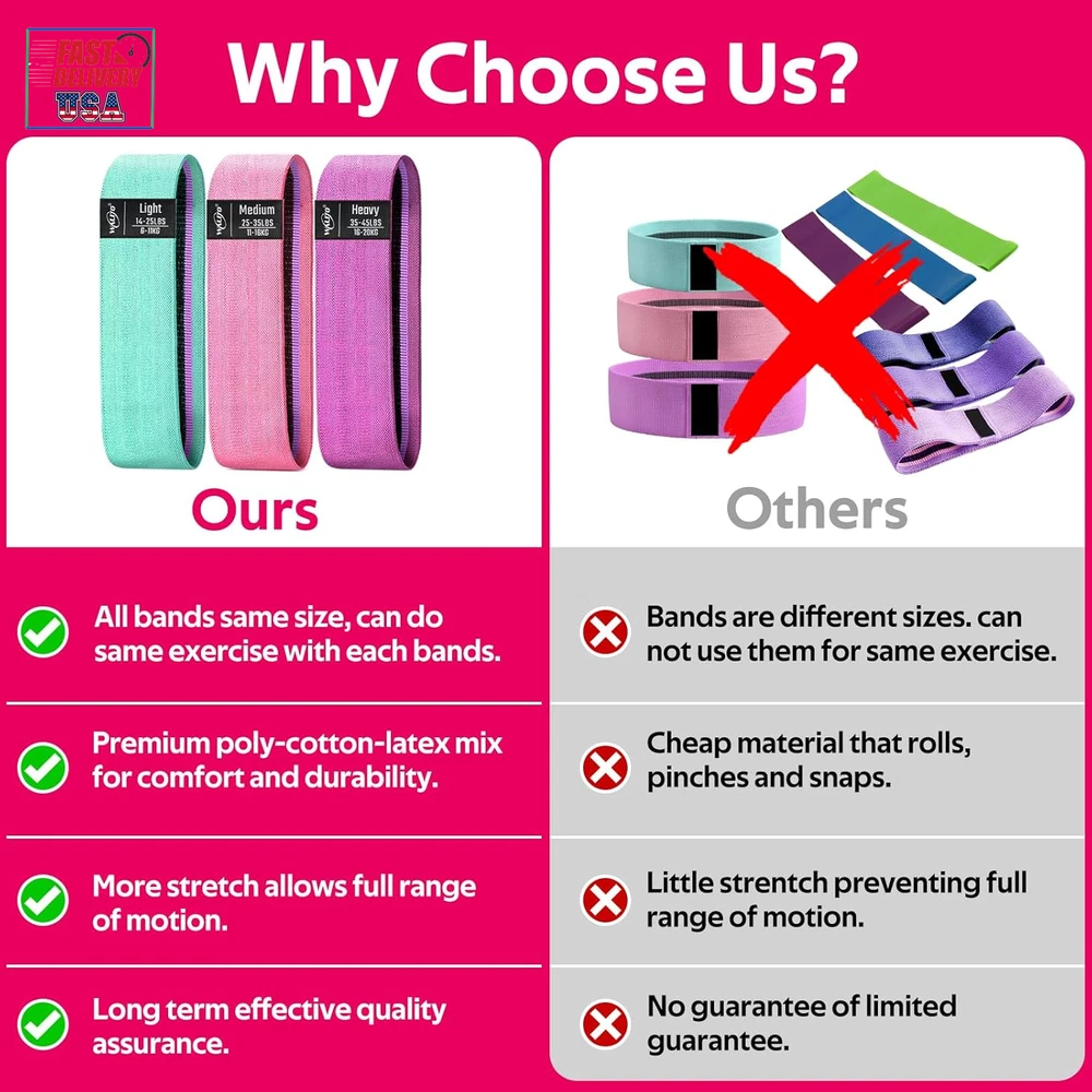Special Feature: Non-Break, Non-Slip, Won't Pinch Bare Legs Item Thickness: 0.18 Inches Material: High Elastic Band Unit Count: 3.0 Count Type: Does not apply Part Number: booty-1 Recommended Uses For Product: Workout Warranty Description: 1year Global Trade Identification Number: 00637673230801 Color: Pink Number of Resistance Levels: 3 Sport: Physiotherapy, Exercise and Fitness, Yoga, Pilates, Body Building Suggested Users: unisex-adult Product Dimensions: 14.4"L x 2.95"W UPC: 7445003950939 Package Weight: 0.36 Kilograms Included Components: 1* Training Guide, 3 * Resistance Bands, 1* Carry Bag Item Dimensions LxWxH: 14.3 x 2.95 x 0.31 inches Style: Resistance Bands for Women and Men Item Package Dimensions L x W x H: 8.15 x 3.7 x 3.03 inches Item Weight: 11.2 ounces Number of Items: 3 Tension Level: Green 14-25lbs, Pink 25-35lbs, Purple 40-50lbs gtin13: 7445003950939 Brand: Does not apply
