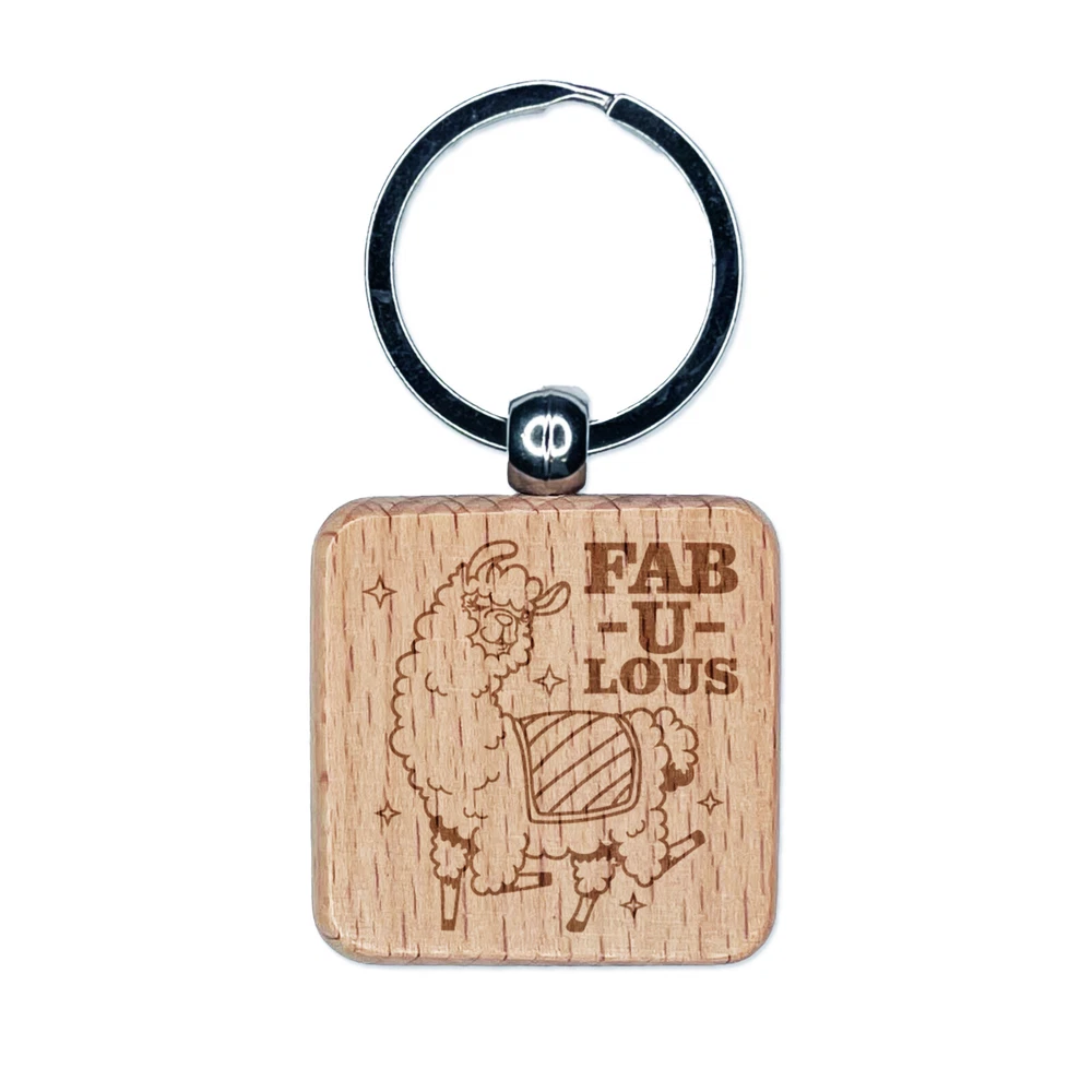 Fabuloso Descarado Alpaca Grabado Madera Grabada Llavero Etiqueta Dije