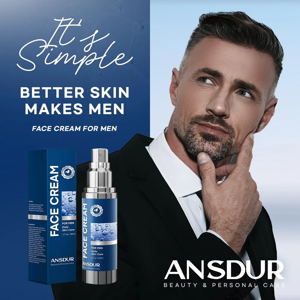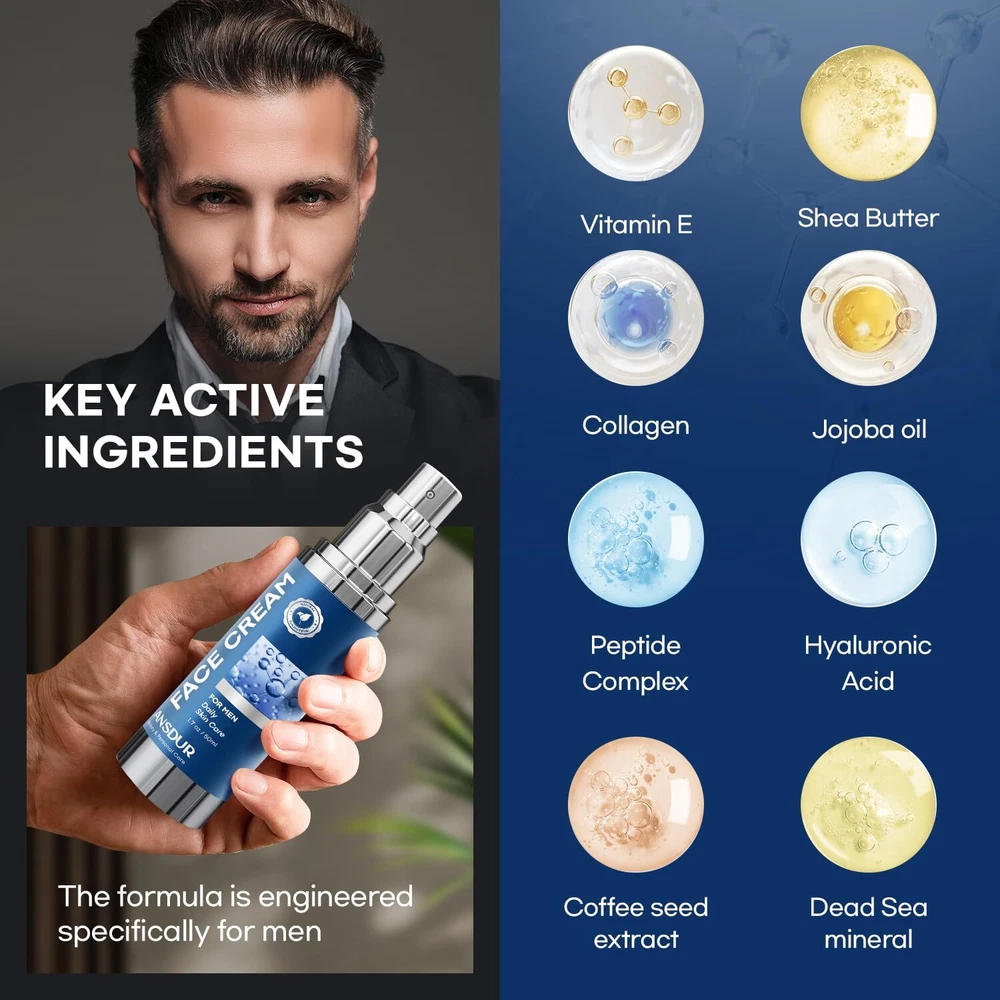 Face Cream for Men 6 in 1 Anti Aging Cream Fights Eye Bags Dark Spots 1.7 Oz