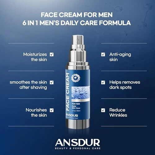 Face Cream for Men 6 in 1 Anti Aging Cream Fights Eye Bags Dark Spots 1.7 Oz