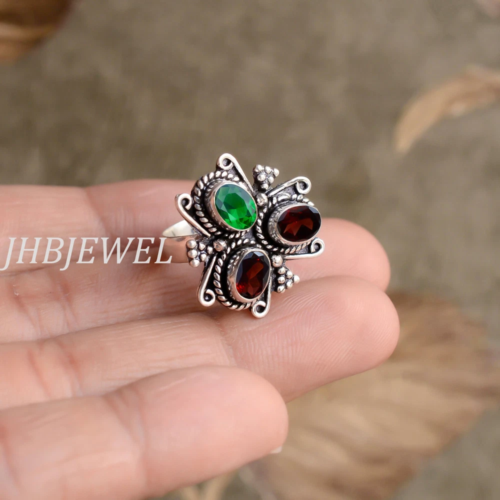 Welcome to jhbjewel Faceted Garnet & Chrome Diopside Gemstone 925 Sterling Silver Easy To Wear Ring Payment Methods: We accept payments only by Payoneer and E-bay .Using this feature you can instantly pay by your credit card or from your PayPal balance. As this is a transaction service provided by eBay, you are assured for complete security in online payments. We will never know your credit card information. Payment should be made within 10 days since the winning of the first item. Non-paying winners will be reported to eBay. Serious bidders only please. Please email us with any questions you may have during the transaction. Shipping Information: US Shipping : $free Shipping International: $free Shipping Shipping & Delivery Time: We ship within 1-3 business days after payment is received. Delivery is generally within 15 TO 20 DAYS worldwide after shipping. We provide you each item is individually packed securely with quality products to help ensure safe and undamaged delivery. Packages are shipped via Registered International Air Mail. In rare cases it makes take up to 4 weeks for delivery depending up on the destinations and customs in your country. All packages have a fully filled customs declaration form in order to avoid any delay in customs. Returns Policy We want you to be100%satisfied with our products and our service. Your satisfaction is our priority. That's why we offer a simple 30days Money-Back Guarantee. If you are not completely satisfied with the purchase, simply send it back to us within 30 days of receiving it and we will issue you a full refund for your purchase - No Questions Asked! Return shipping charges are not reimbursable. Please contact us if you would like to in itiatea return, so that we may guide you through the process. We can be reached through the "Ask a question" link on the listing. All items must be in their original condition as received, not worn or altered. Product Pictures: All jewelry photos are taken by professional photographers. They use many photo equipment, like Flash, Day Light and etc. Some of the stone color might have effected a little. (Example: An amethyst stone is dark purple color, under the flash and lights it might affect the color a little and its hows little light purple instead of dark purple.) If you bring the jewelry outside under the sunshine you will see the same piece showing under the daylight. Please also note we have tried to keep the images as accurate as possible; however there might be some color variations in the images published on our store and the real product due to light effects & photography. FEEDBACK: Feedback DSRs (Detailed Seller Ratings). We want to earn your good feedback and 5 stars DSR rating. Unfortunately, 4 stars are considered a bad rating for sellers and can resulting restrictions on our account. Please help us maintain our business and give a 5-Star rating in all 4categories. We strive for 100% Customer Satisfaction and weal ways leave positive feed backs to our buyers. Our feedback and DSRs are extremely important to us as better DSR scores affect our search placement on eBay. If you still think that you still can? t leave a 5-Star across the Board, please email us or call us and we assure you that your issue will be resolved immediately. Sincerely, jhbjewel