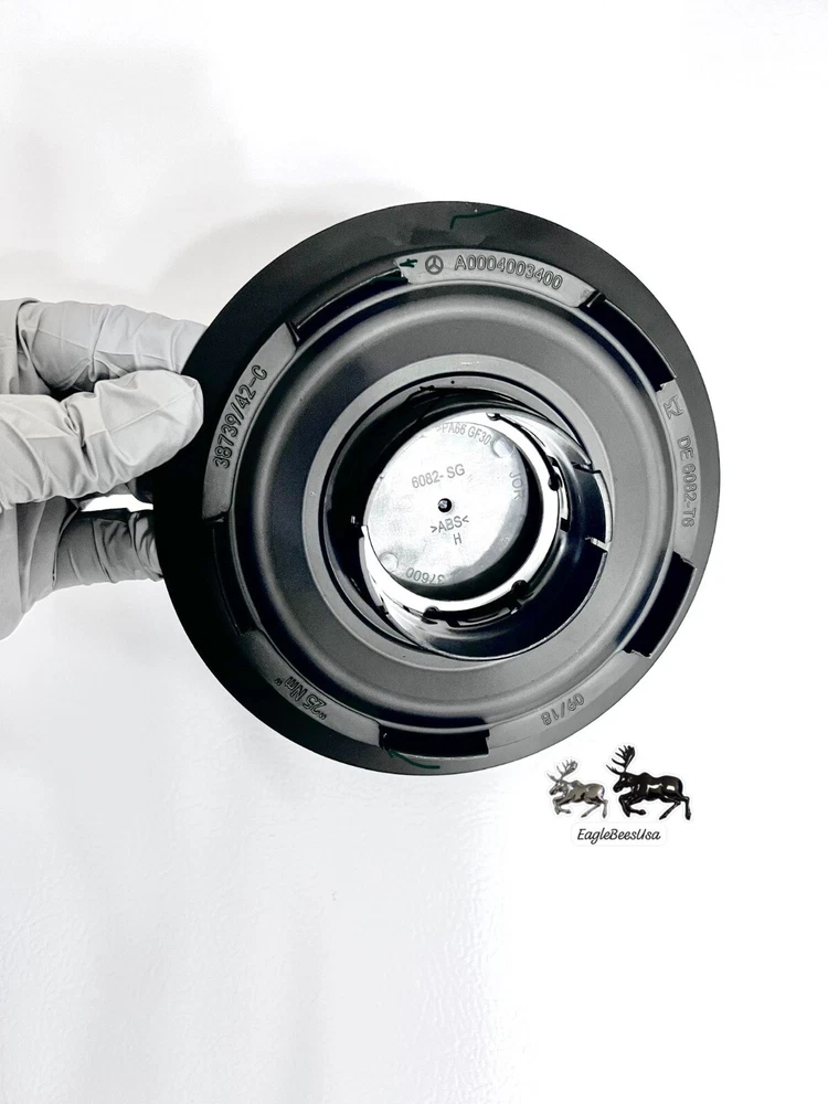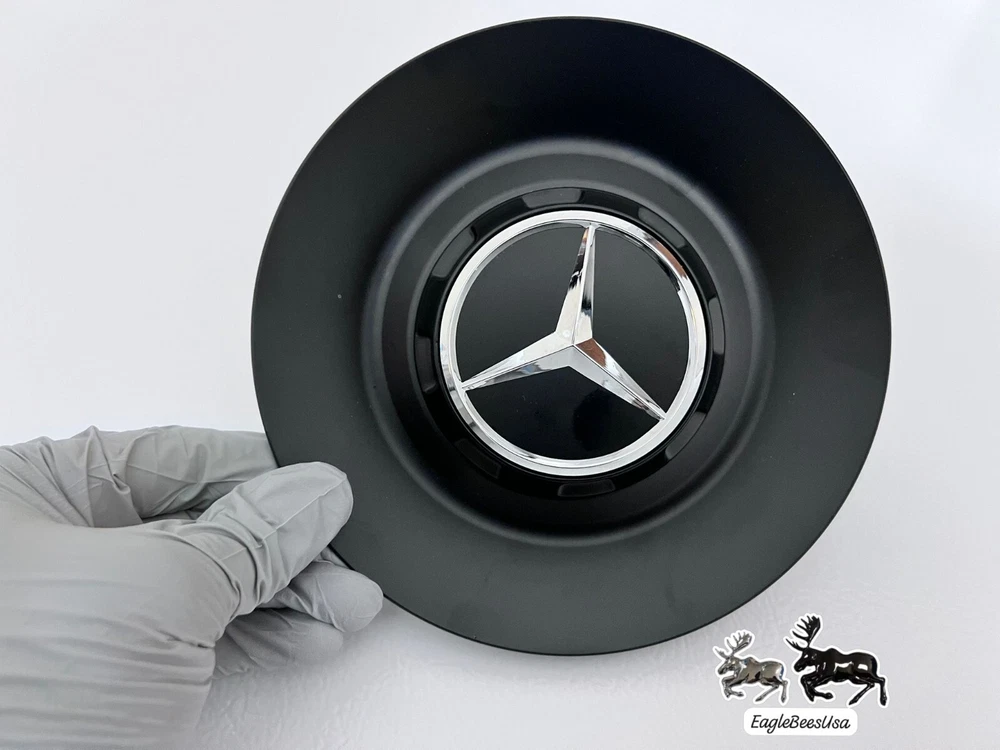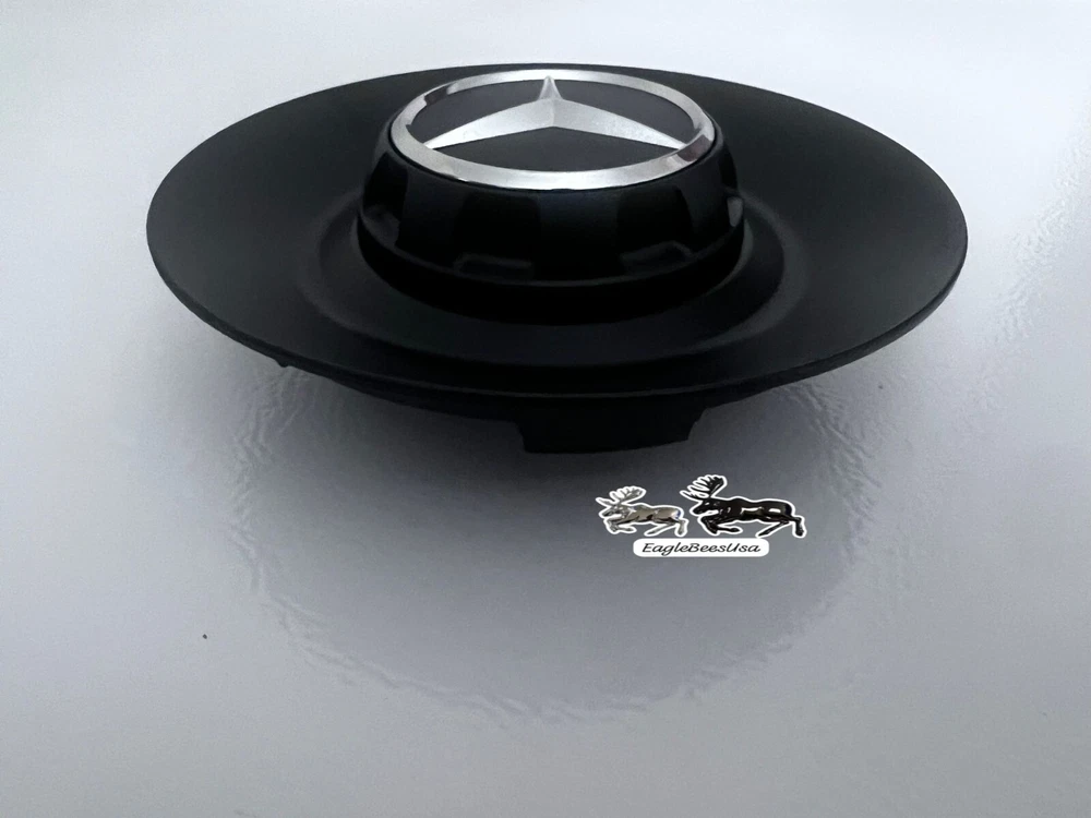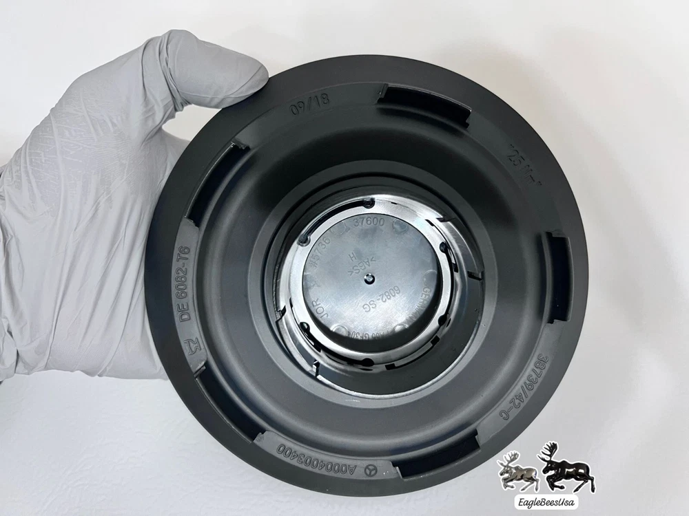 This is a genuine Mercedes-Benz factory center cap designed for G63, G550, and G Wagon vehicles. It is made of aluminum and steel with a rust preventative matte finish, featuring the Mercedes-Benz emblem. The center cap has an outside diameter of 163.5 mm and is easy to install on the rear, left, front, or right wheels. The manufacturer part number is 00040043009283, and it is interchangeable with part numbers 000-400-34-00-28-9283 and 000-400-34-00-9283. This OEM AMG wheel center cap is sold individually.
