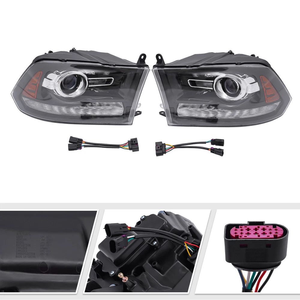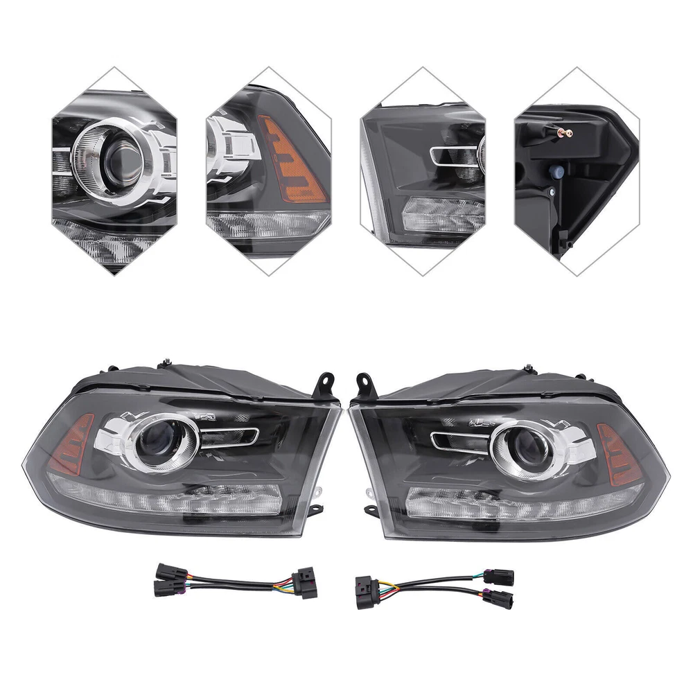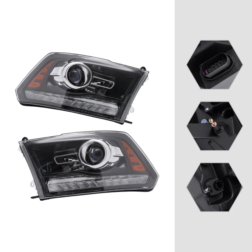 Factory Projector Headlights W/ LED DRL For Dodge Ram 1500/2500/3500 2013-2018 For 13-2018 Dodge Ram 1500 2500 3500 Headlights Pair LED DRL w/Turn Signal Bulbs Specifications OEM: CH2502245, CH2503245, CH2502244, CH2503244 Manufacturer Part Number: CH2502245, CH2503245, CH2502244, CH2503244 Interchangeable Part Number: 68093220AD, 68276122AC, 68324932AD, 68093217AD, 68324941AD, 68093216AD, 68324940AD Applicable Models: 2013-2018 Ram 1500 2500 3500, 2019 Ram 1500 Classic Condition: New Material: PP-TD40 Lens Color: Clear Housing Color: Black Working Voltage: 12V Light Source Type: Halogen, LED High Beam Type: 9006 (Included) Low Beam Type: 9005 (Included) Turn Signal Type: LED (Included) Side Marker Lamp Type: LED (Included) LED Daytime Running Light: Yes Installation Position: Front, Left, Right Way of Use: Direct Replacement Assembly Method: Closed Gross Weight: 7kg/ 15.43 lbs Net Weight: 6.5kg/ 14.33 lbs Package Size: 65*50*26cm/ 25.59*19.69*10.24in Key Features Good Compatibility: This product is a customized product, specially customized for the 2013-2018 Ram 1500 2500 3500 and 2019 Ram 1500 Classic. So it can be compatible with the adapted models. Good Customer Service: Communication is the best way to solve problems. If you encounter any problem after purchase, please contact us in time before opening or unpacking the box. We will do our best to solve the problem for you. High-quality Material: This product is made of high-quality PP-TD40, with high hardness, strong compression resistance , and long service life. Highlights Brand New, With High Quality Direct Replacement Trouble-free Installation Stylish Appearance Strong and Durable Exquisite Workmanship Easy to Clean Stable Performance Long Service Life Fits (As a Reference) For 2013-2018 Ram 1500 2500 3500, 2019 Ram 1500 Classic OEM Part Number: CH2502245, CH2503245, CH2502244, CH2503244 Package Included 1 Pair x Left & Right Headlamps Notes The product is compatible with factory projector headlight models only, and not w/ dual & quad beam headlight models. We strongly recommend professional installation. Please contact us if you have any questions. Please allow the slight color difference caused by the shooting light and 1-3cm error due to manual measurement, and make sure you do not mind before you place the order. Payment Delivery details Terms of sales About us Contact us Payment We accept ebay payment 。 Fees such as import duties, taxes are not included in the item price or shipping costs. These charges are the buyer's responsibility. Delivery details Shipping: 2-9 working days to: USA Terms of sales We maintain high standards of excellence and strive for hundred percent customer satisfaction. Feedback is very important to us. We hope that you contact us immediately before you give neutral or negative feedback, so that we can address your concerns. It is impossible to address issues if we do not know about them! About us Your satis faction is our ultimate goal. We work hard to earn your trust and future business. Our certified technicians have tested each item before shipping. The unit comes with 1 year limited warranty on all manufacturing defects. a) If you receive a defective item, you may return it or ask for a discount. Please contact us within 14 days after you receive the package. b) What you returned must be intact and in its original packaging as re? u. Customer is responsible for shipping costs of the returned item. c) We will cover the cost of shipping back t with the shipping rate indicated in the registration page. We will send you a new unit or refund the full payment you paid. Thank you. Contact us Business Hour Business Hour: Monday To Friday: 8:30 AM to 5:00 PM (Beijing China time) Due to time zones, our reply to your questions may not be immediately. But within above working time, we will reply your email within 24 hours. If it's non-workdays, please kindly be patient and wait till Monday. Please contact us with ebay message. Please feel free to contact us if you have any questions. Monday To Friday: 8:30 AM to 5:00 PM (Beijing China time) Due to time zones, our reply to your questions may not be immediately. But within above working time, we will reply your email within 24 hours. If it's non-workdays, please kindly be patient and wait till Monday. Please contact us with ebay message. Please feel free to contact us if you have any questions. Assembly Type Composite Features Composite Design Part Name Headlight Brand Unbranded Type Headlight Assembly Placement on Vehicle Front, Left, Right Applicable Models 2013-2018 Ram 1500 2500 3500, 2019 Ram 1500 Classic Housing Color Black Lens Color Clear Manufacturer Part Number CH2502245, CH2503245, CH2502244, CH2503244 Interchange Part Number 68093220AD, 68276122AC, 68324932AD, 68093217AD, 68324941AD, 68093216AD, 68324940AD Items Included Bulbs Light Source Type Halogen, LED Lighting Technology Halogen Material PP-TD40 Working Voltage 12V High Beam Type 9006 (Included) Low Beam Type 9005 (Included) Turn Signal Type LED (Included) Side Marker Lamp Type LED (Included) LED Daytime Running Light Yes Bulb Shape Code / Number of Bulbs / Assembly Method Closed Light Color Cold White Way of Use Direct Replacement OE/OEM Part Number CH2502245, CH2503245, CH2502244, CH2503244 Gross Weight 7kg/ 15.43 lbs Net Weight 6.5kg/ 14.33 lbs Package Size 65*50*26cm/ 25.59*19.69*10.24in
