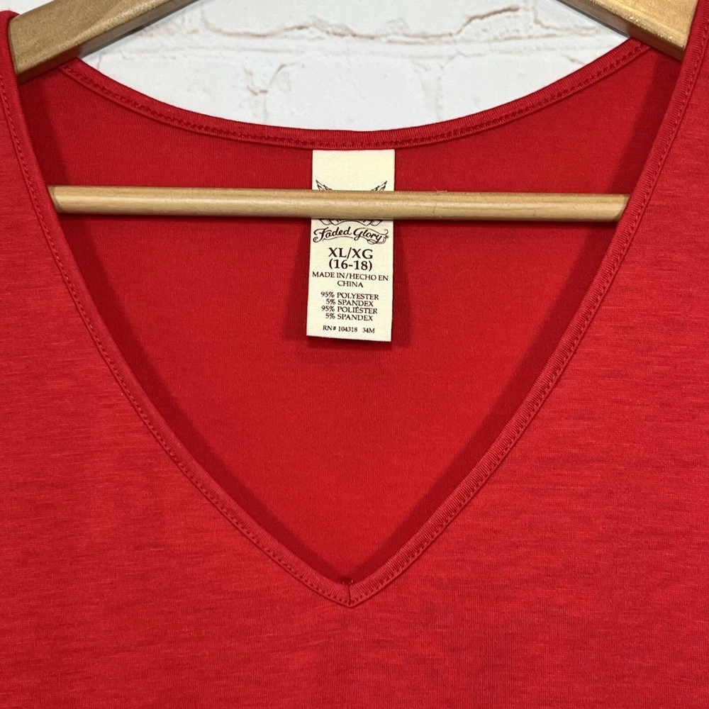 Faded Glory Dress Womens Size 16-18 Red Midi Stretch V Neck New See measurements for accurate fit Shoulder to hem 36 inches Pit to Pit 21 inches All measurements are done flat lay