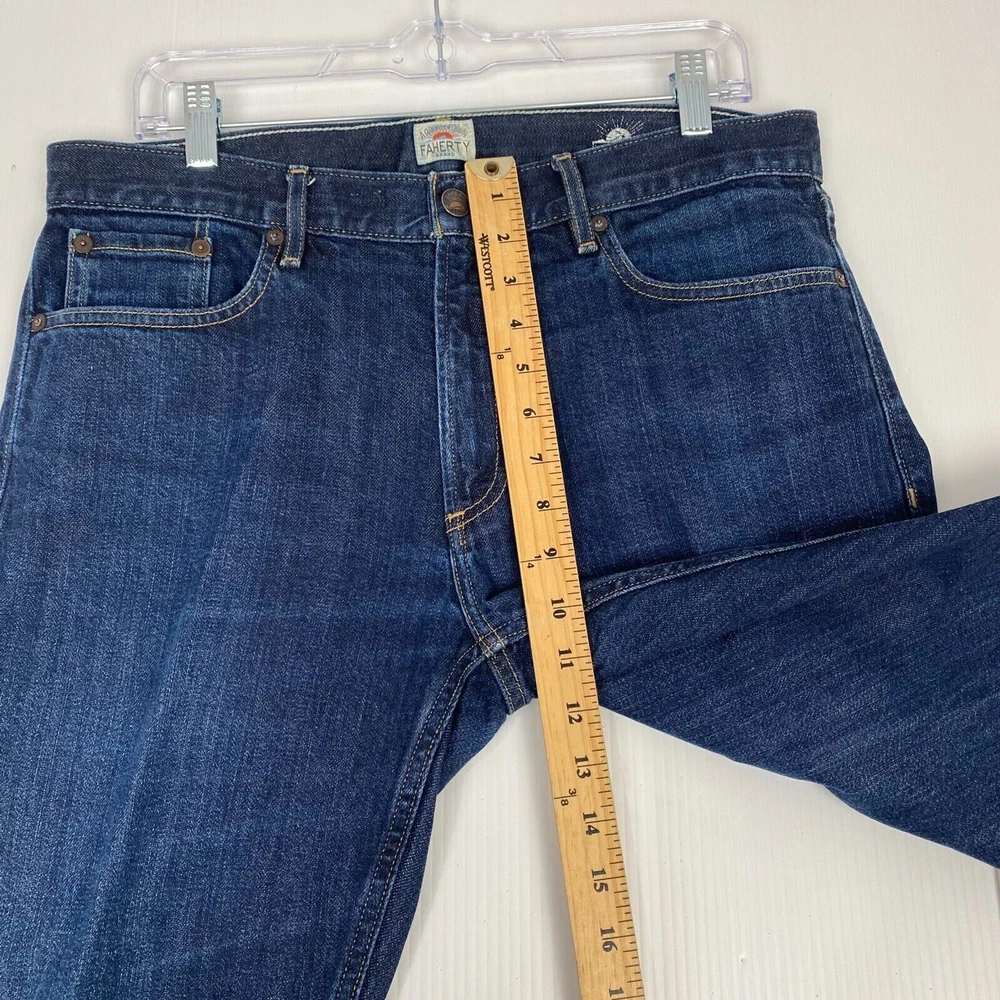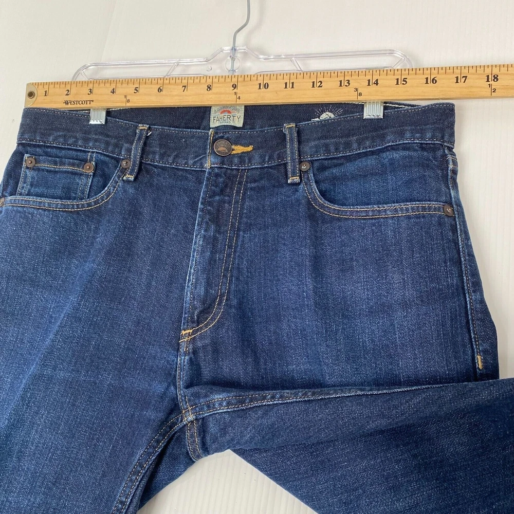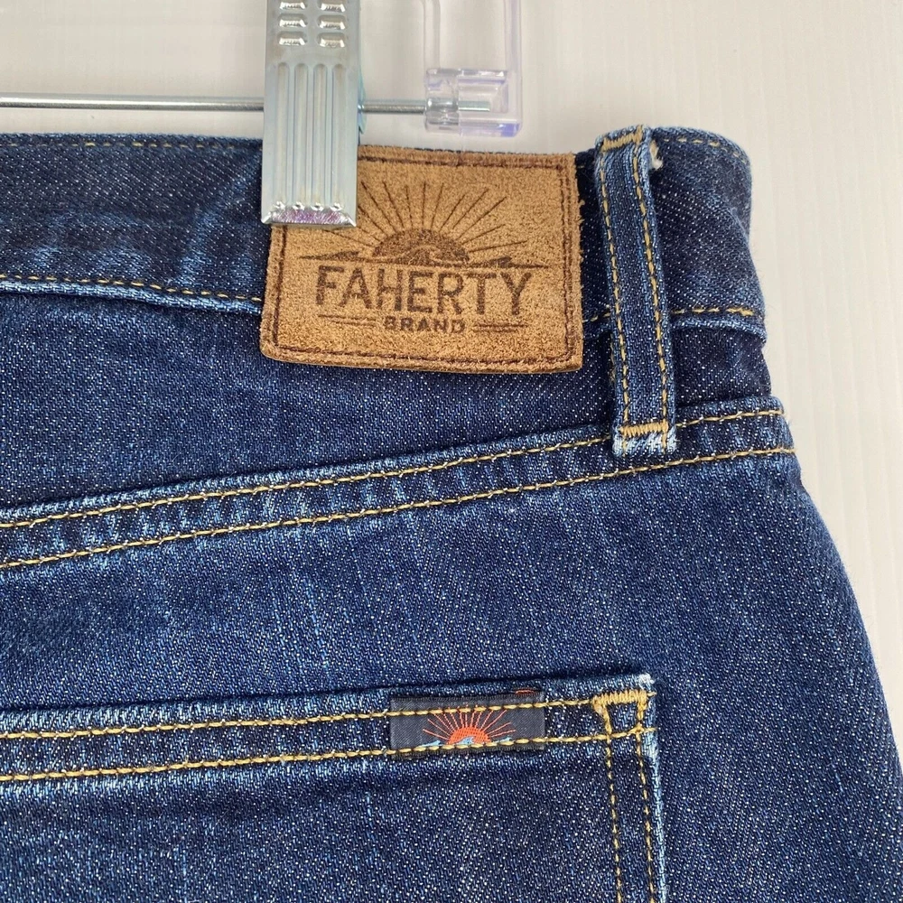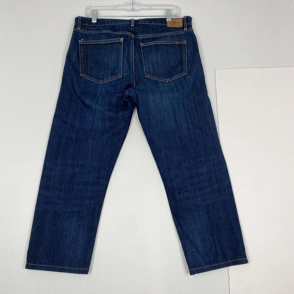 Faherty Pants Men Size 33x24 Blue Stretch Terry 5-Pocket Knit Jeans Straight comes from a smoke and pet free place, you can contact us if you have questions. Please note that some photos may not show accurate shades. Photos are of the actual item you will receive. See photos for details. Please see photos for measurements Excellent Condition.