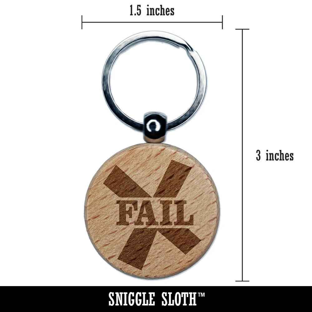 Fail X Mark Engraved Wood Round Keychain Tag Charm