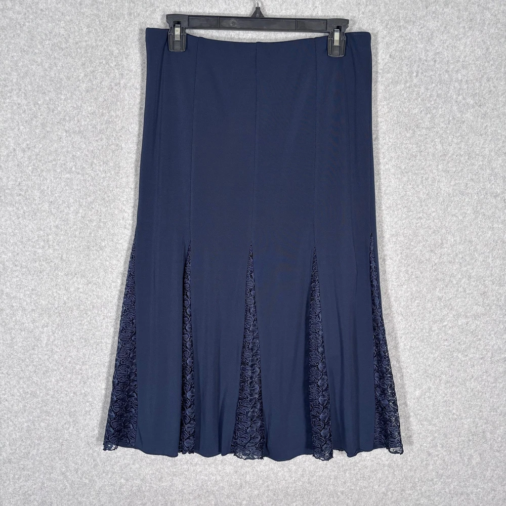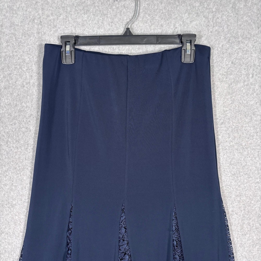 Theme: Festival, Gothic, Preppy, Retro, University Pattern: Solid Size: L Accents: Lace Material: Viscose, Polyester, Spandex Vintage: No Color: Blue Occasion: Business, Casual, Formal, Party/Cocktail, Travel, Wedding Department: Women Fabric Type: Lace Skirt Length: Midi Size Type: Regular Features: Stretch, Lined Seller Notes: “Refer to photos and description for condition details” Type: Skirt Brand: Unbranded Closure: Pull On Style: Flare