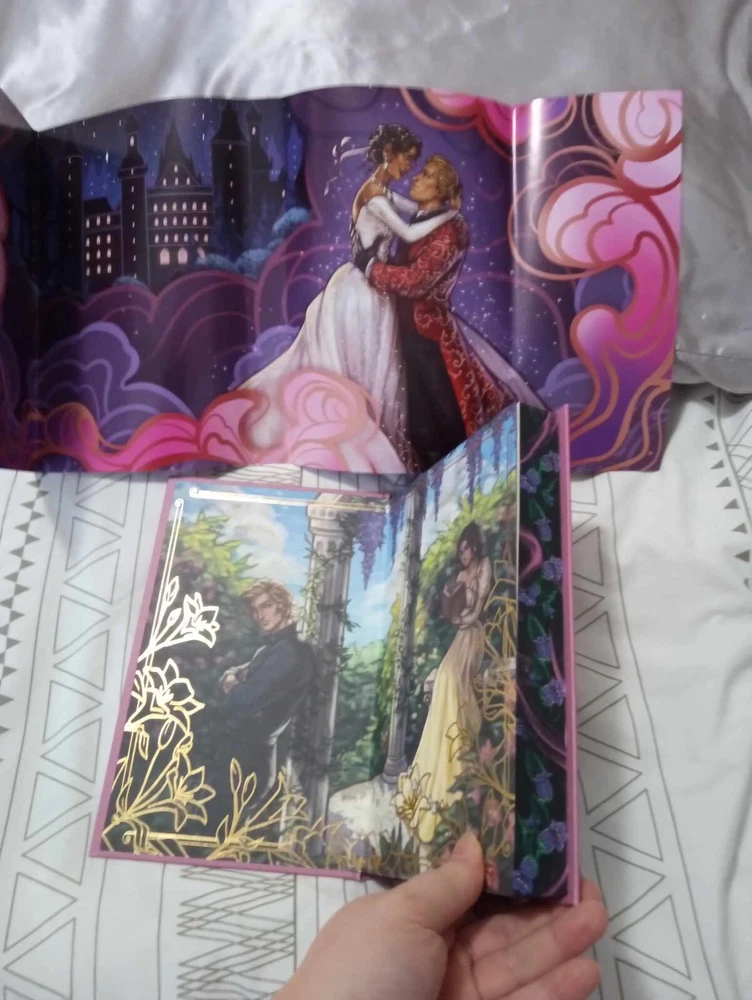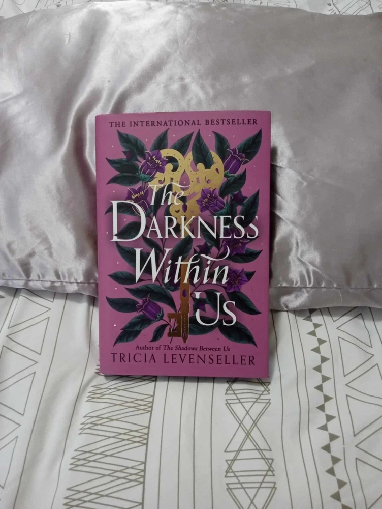 Fairyloot exclusive edition The Darkness Within Us by Tricia Levenseller features: exclusive color-changed cover foil design on the hardcover reversible dust jacket endpaper art with foiling digitally sprayed edge (solid black top and bottom) bonus content author letter bound into book with digital signature