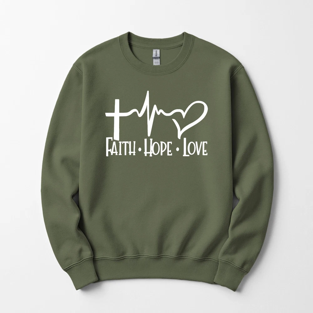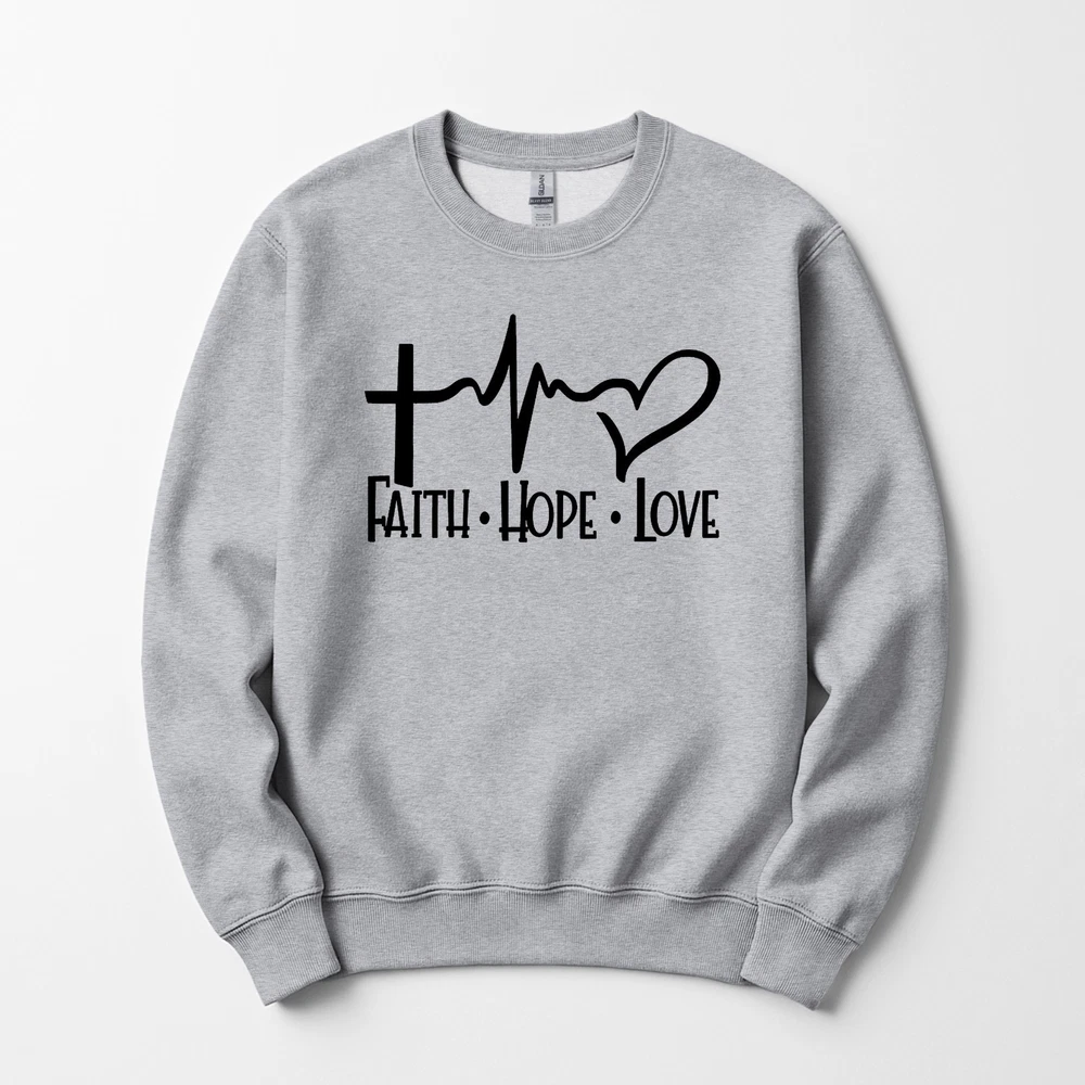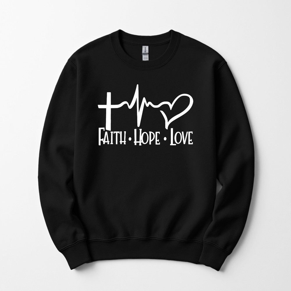 Faith Hope Love Heartbeat Sweatshirt SIZE Runs True To Size Please Refer To The Size Guide In The Pictures FEATURES 50% cotton and 50% polyester Goes with any outfit Please pick size and color. Thanks so much for looking!