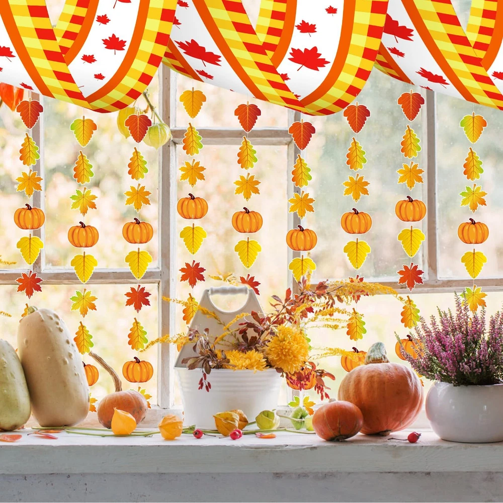 Package Includes: 1 fall ceiling banner 18 pumpkin ornaments 90 leaves ornaments in 3 different shapes 300 x 9cm Plastic Hanging Strings 30 x Silver Copper Pins Versatile Applications: The hanging autumn ceiling decorations can be applied to decorate the doorway, courtyard, ceiling, wall, tree, glass window, tent, furniture, door, fireplace, mantel, reception and so on, adding more Autumn, Thanksgiving, Halloween festive atmosphere. Appropriate Size: The fall ceiling decorations banner is about 35 x 270 cm/ 13.7 x 106 inches; Such a large size is very suitable for hanging on the ceiling of the classroom or living room,indoor or outdoor. How to use: 1.Thread the pin through the cardstock. 2.Put the pin through the banner respectively. 3.Pass the rope through the hole in the pin. 4.Hang it on the ceiling or on the wall. Fall Party Decorations: Enhance your gathering with these enchanting autumn-themed ceiling decorations that exude a cozy fall ambiance. The fall decorations set comprises an autumnal banner, 18 pumpkin ornaments, 90 leaf ornaments in three different shapes, and complementary accessories to elevate your party ambiance. Autumn Atmosphere: These autumn party decorations will complement your seasonal festivities and infuse a warm atmosphere. This autumnal ceiling decor is sure to be a standout feature at your event. Adorn your autumn party with these vibrant supplies to create lasting memories of your harvest-themed celebration. Versatile Usage: These fall ceiling decorations are versatile and ideal for various settings. Whether for autumn parties, harvest gatherings,Thanksgiving party, Halloween party, fall-themed soirees, woodland parties, or seasonal feasts, these autumnal ceiling decorations bring a distinct and lively touch to your event. High-Quality Materials: Made from premium polyester, these autumnal ceiling decorations are durable and resistant to wear. The robust paperboard pumpkin and leaves ornaments are dependable and can be reused for future fall festivities. Easy Assembly:The fall ceiling banner is designed with holes at each of the 4 corners and fitted with a plastic rope, and you can use the safety pins to connect it with colorful garlands, simple and convenient, finally you will get a beautiful fall decoration.