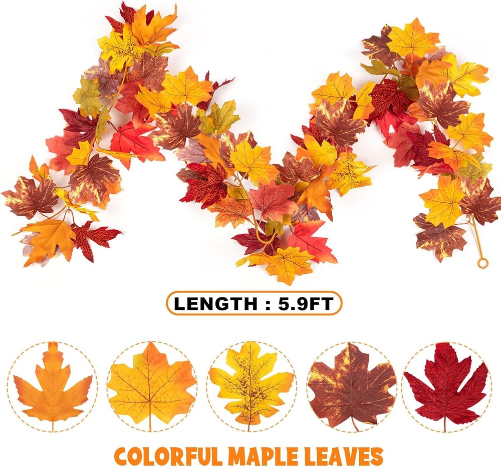 Fall Maple Leaf Garland, 2PCS Thanksgiving Artificial Hanging 2 Yellow LuxeFusion Product Description Features Plastic UNIQUE DESIGN: Yellow is the classic Thanksgiving day and Autumn theme color, and maple leaves are classic decorations. The Yellow maple leaves garland is a unique and new design, which perfectly fits the Warm and grateful atmosphere of Thanksgiving and Autumn HANGING GARLAND: There is a ring at both ends of the artificial maple leaf vine, and each vine comes with two non-marking hooks. So, it's very easy to hang on door, windows, walls, fireplace and stair railings as Thanksgiving and Halloween decoration SUPERIOR MATERIAL: The maple leaves are made of quality plastic and silk cloth which is more advanced and textured than other color maple leaves, also suitable for collocation with other Thanksgiving day decorations DENSE MAPLE LEAVES: Each maple leaves garland comes with about 36 flexible twigs and 72 pcs vivid maple leaves. Although there are so many it's still very light ( 2.5 oz ) and can be folded to save space THANKSGIVING GARLAND'S PACKAGE: 2 Strands of 5.9 feet artificial maple leaf garlands. Total length: 11.8 feet. Comes with 4 adhesive hooks. Please choose order quantity to meet your needs Product Details Shape: irregular Manufacturer: KVCSYAW Package Dimensions: 8.23 x 5.04 x 3.03 inches Item Weight: 7 ounces Country of Origin: China Item model number: 12T-FallMaples Fabric Type: Plastic Assembly required: No Batteries required: No Included Components: 2 PCS Yellow Fall Maples leaf Brand: KVCSYAW Color: 2 Yellow Material: Plastic Item Length: 11.8 Feet Plant or Animal Product Type: Maple Free Shipping All orders ship free and fast to your doorstep. Easy Returns Satisfaction guaranteed. 30-day returns, no questions asked. 24/7 Support Contact us anytime; we’re here to help, day or night. Brought to you by LuxeFusion – Quality you can trust.