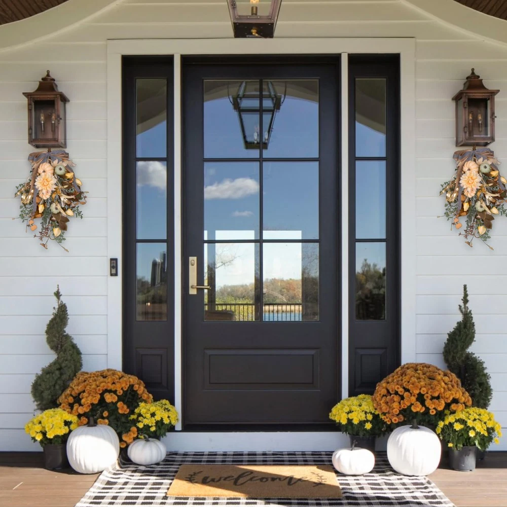 This gorgeous fall wreath is the perfect way to welcome autumn! The vibrant mix of pumpkins, flowers, and foliage gives it a rich, festive look. The bowse is a charming touch, and the quality is fantastic—it feels sturdy yet lightweight. Whether on your front door, porch, or wall, it instantly adds cozy seasonal charm. Love how full and detailed it is! Highly recommend for Thanksgiving or everyday fall decor.