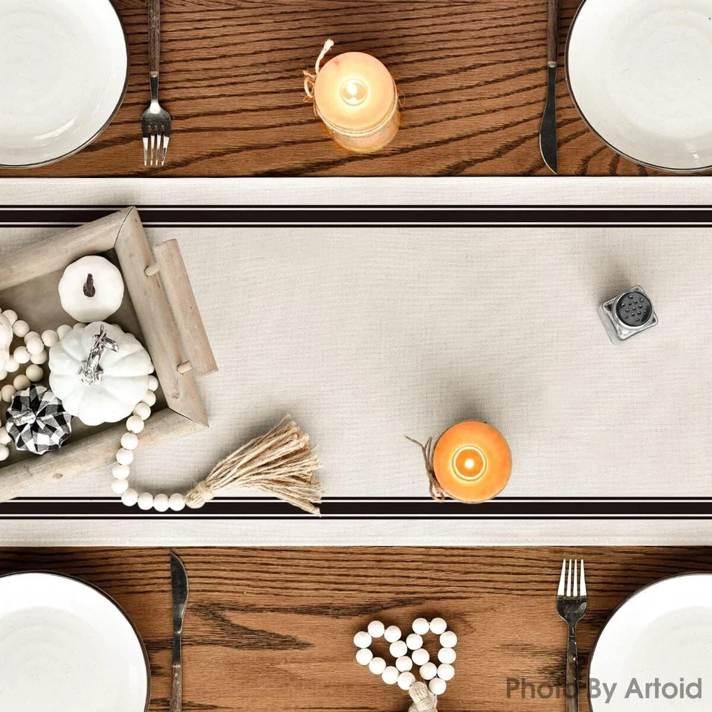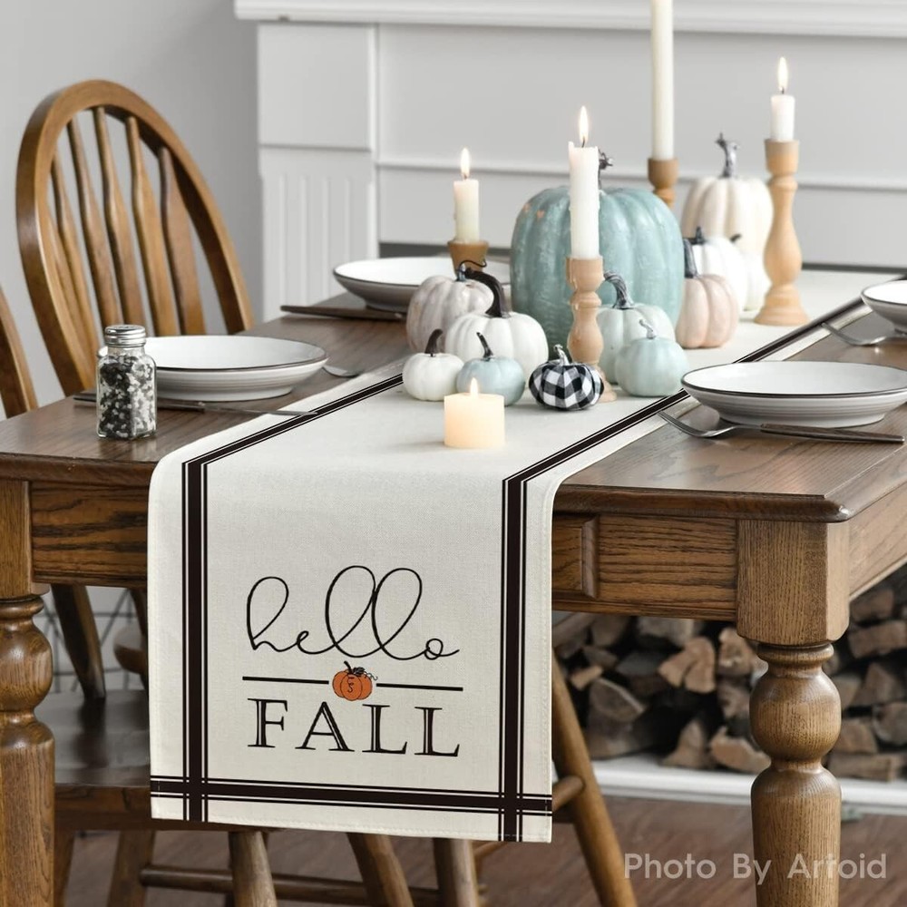Fall Striped Pumpkin Table Runner for Dining Decor - 13x120 Inches