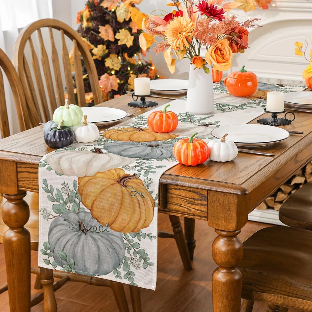 Fall Table Runner 13''x72'', Pumpkin Thanksgiving Decor for Indoor/Outdoor Table