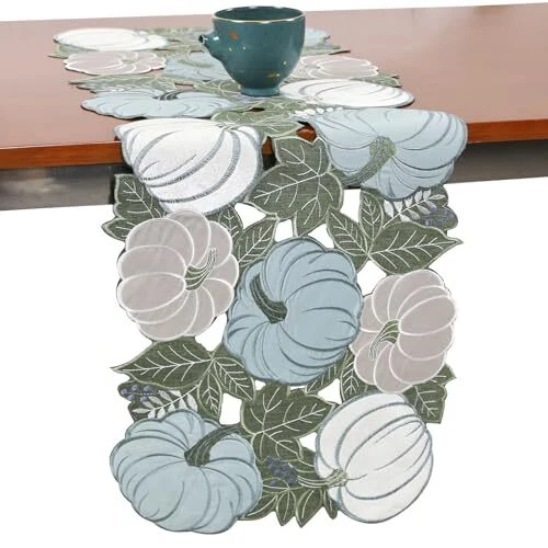Fall Table Runner Pumpkin 36 Inches Long Thanksgiving 13×36IN Blue Pumpkin