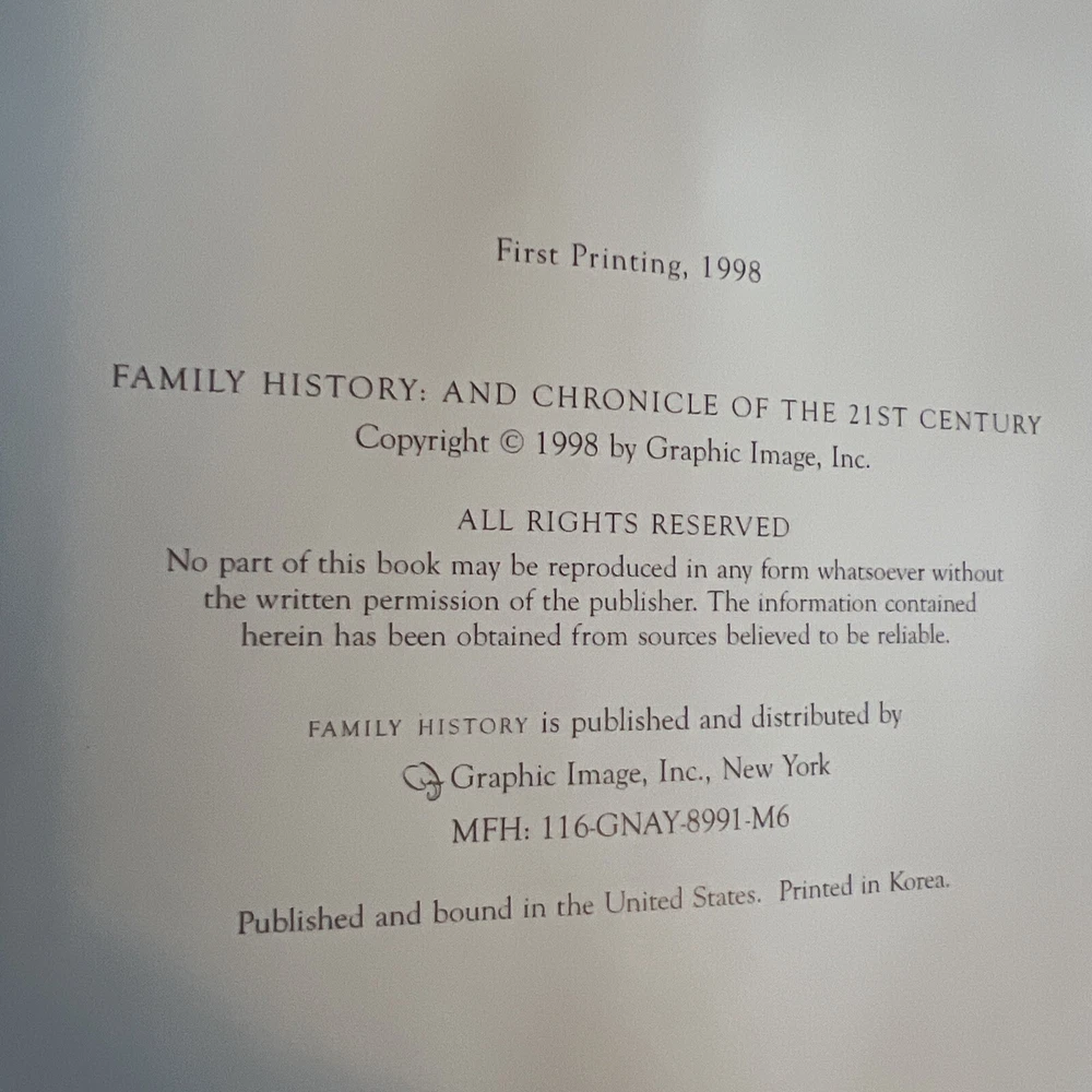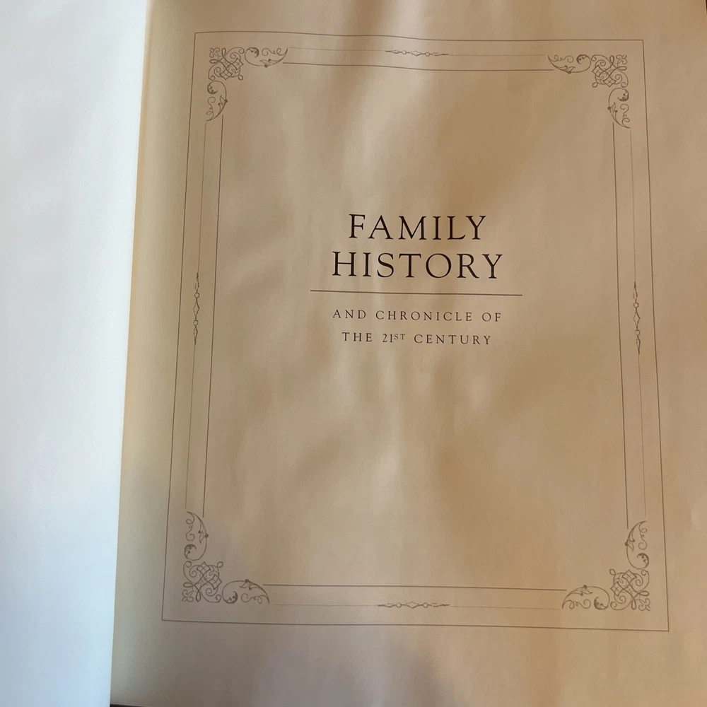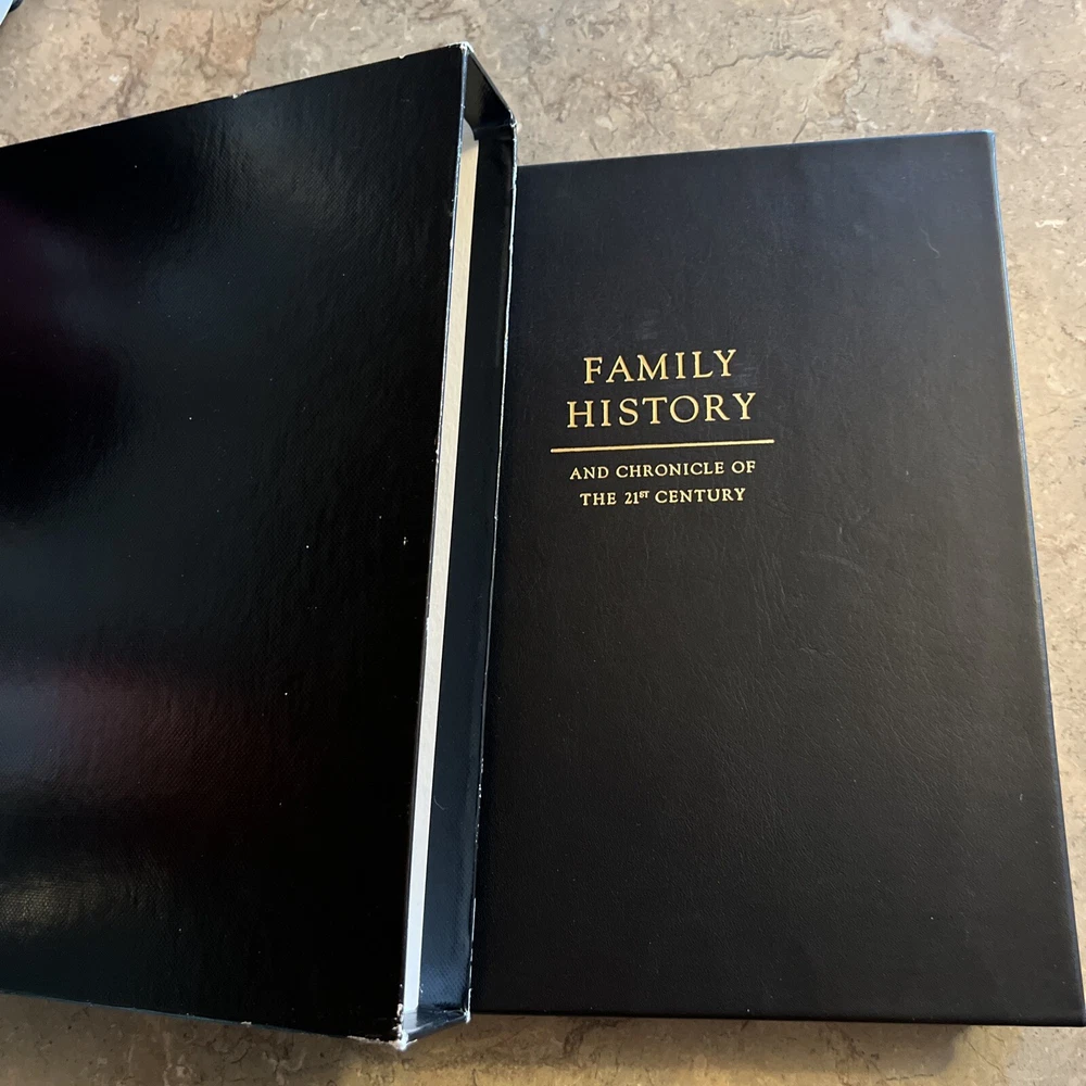 Family History & Chronicle Of The 21st Century Leather 1st Ed. Slipcase New book only slipcase has some wearing see picture and the pages inside look little uneven not smooth but book is new nothing wrote inside Pet smoke free home Great gift